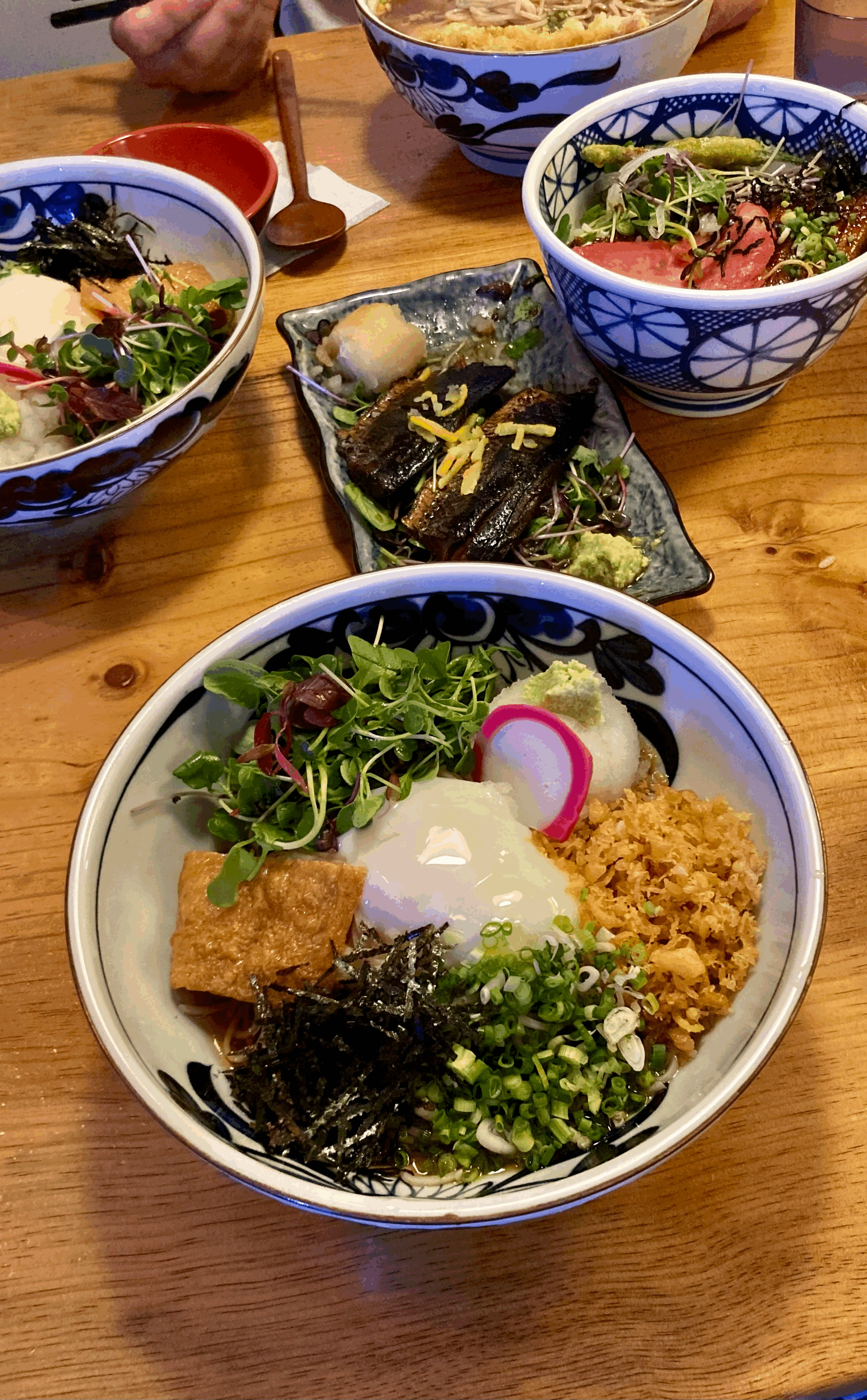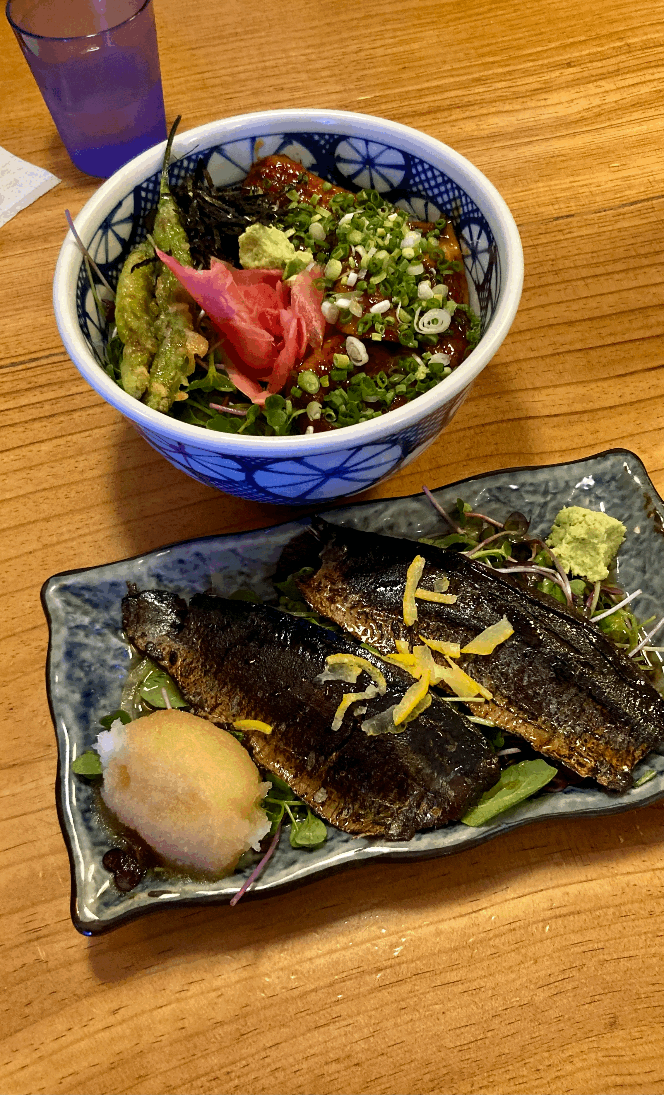 일본인이 하는 식당 같은데, 셋이서 새우튀김 올라간 냉소바 하나와 타누키 냉소바 둘을 시키고, 장어덮밥과 청어구이까지 시켰다. 주문 받는 분이 조금 많은듯 고개를 겨우뚱거리길래, 대식가라고 하니 웃어 주었다.