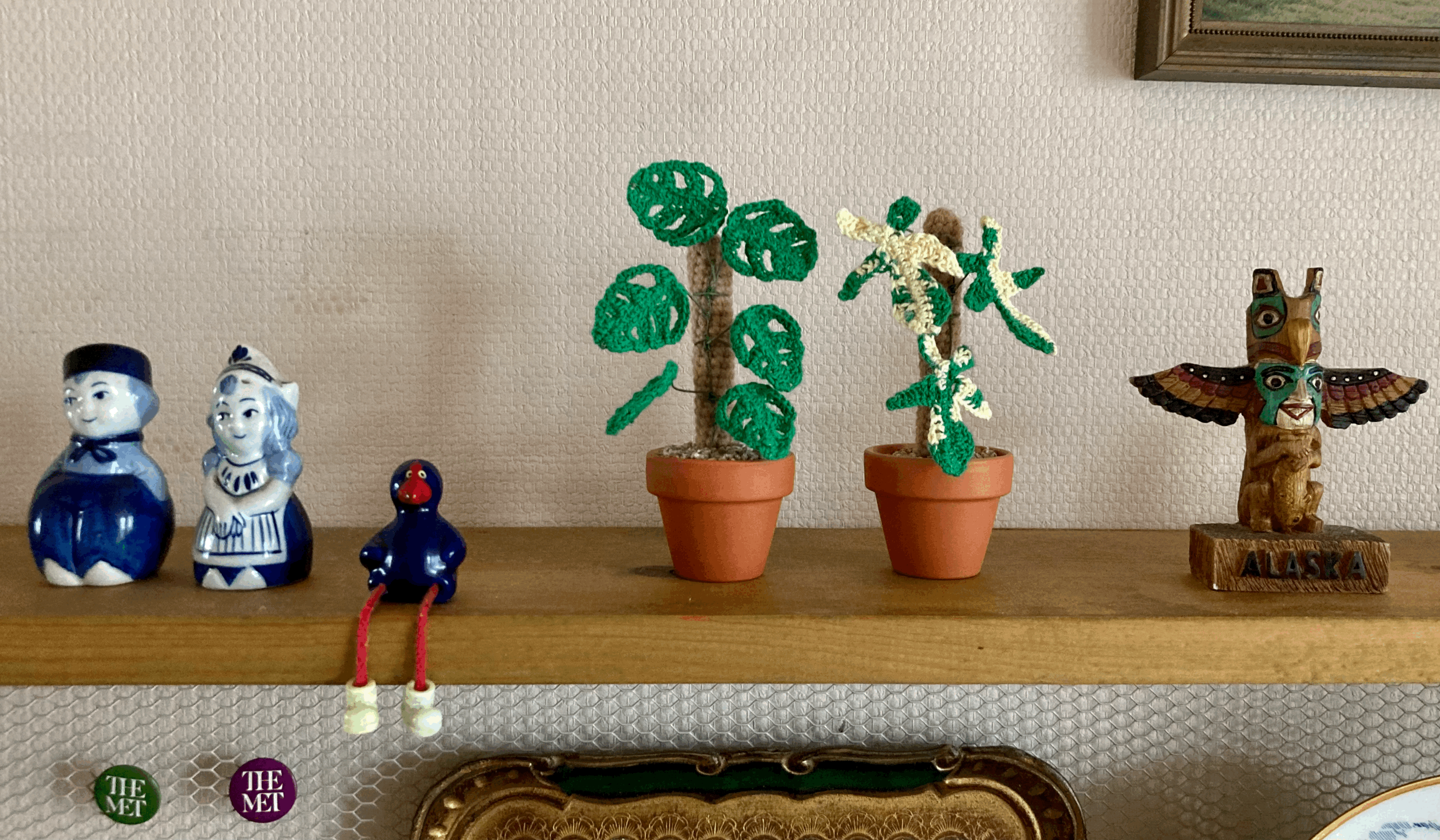 좀 더 공이 가는 식물 뜨개는 앙증맞은 몬스테라 미니 화분인데, 이 또한 살아 있는 식물 같다. 따로 배운 것도 아니라는데, 눈썰미와 손놀림이 아주 제법이다. 살아 있는 화초도 좋지만, 이렇게 동식물의 특징을 포착해 미니멀하게 옮긴 장식들이 주는 즐거움도 큰 것 같다.