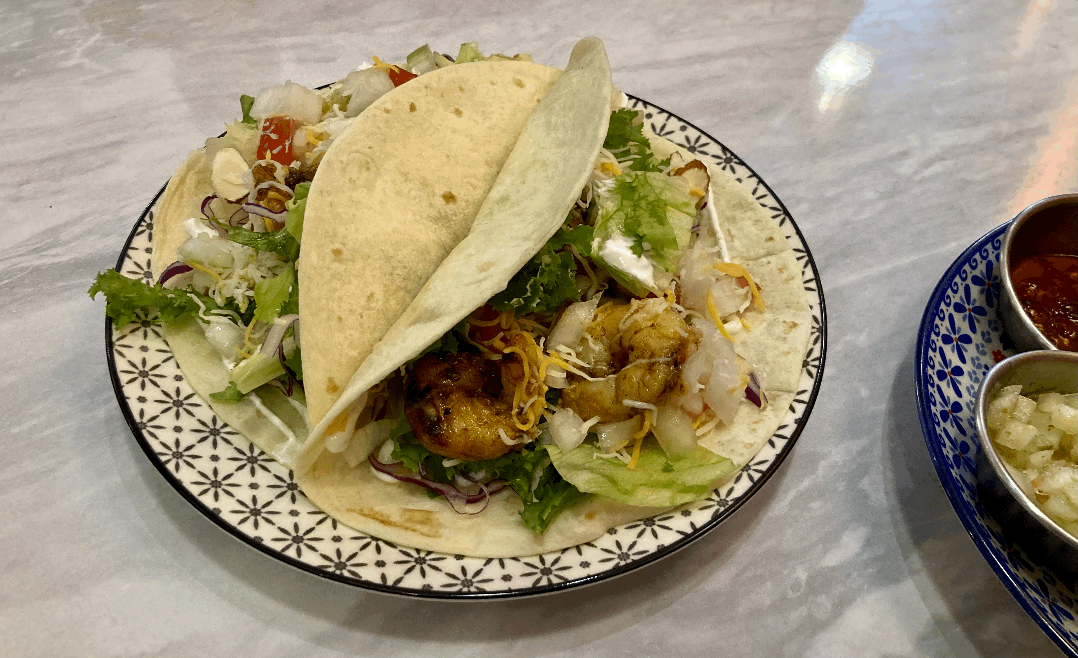 미사역 5번 출구 맛집 존앤맷을 광복절 점심에 갔다 왔다. 미사역 일대 빌딩 숲 사이에 자리 잡은 동네 작은 1층 식당들 가운데 하나다. 타코와 브리토, 화히타를 내는 멕시칸 레스토랑인데, 넷이서 화히타 세트 3인분과 각각 두 개씩 나오는 치킨과 새우 타코를 시켰다.