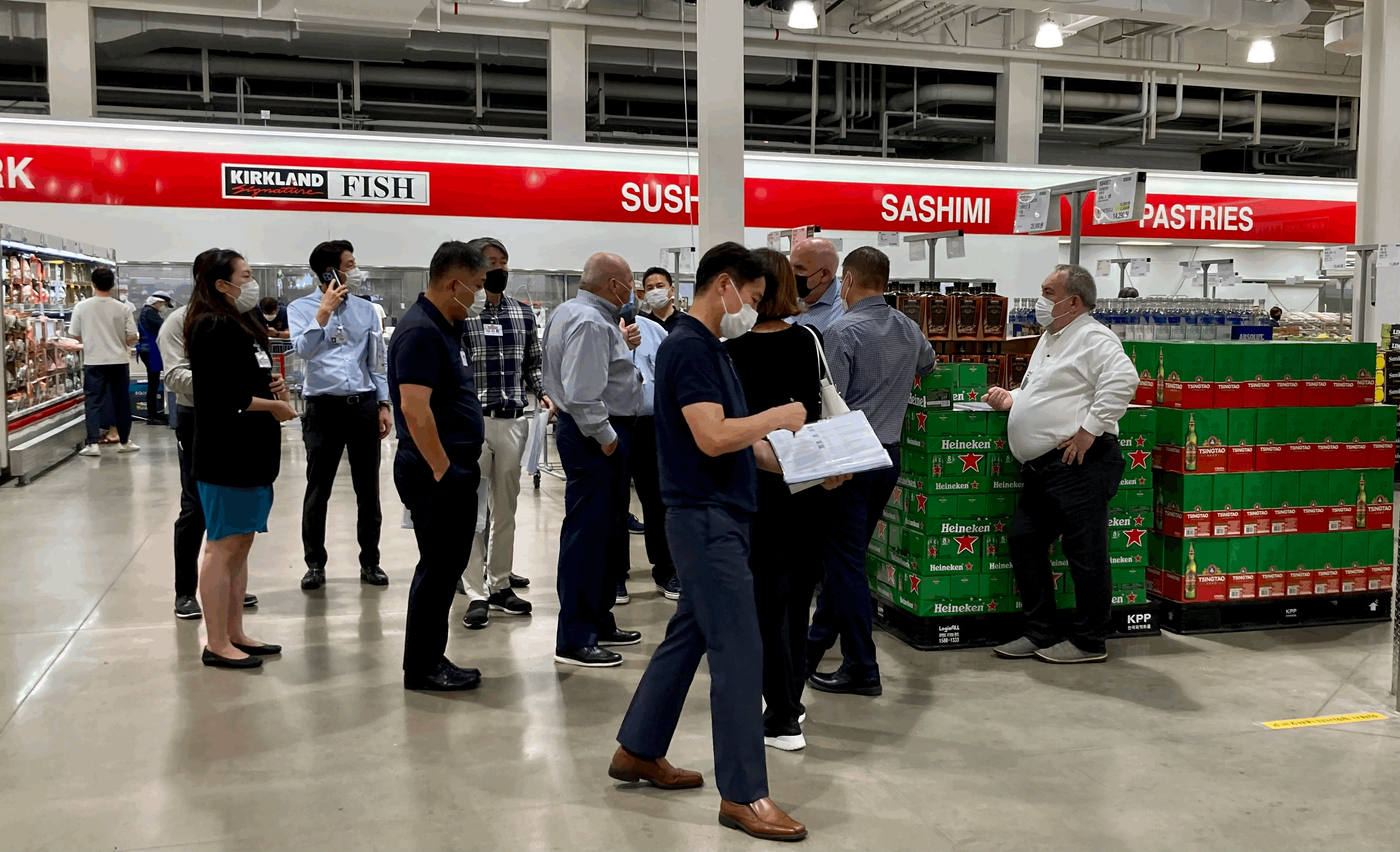 생김새로 봐서 미국 본사 직원들이 온 것 같은데, 한국 직원들 안내로 매장 여기저기를 둘러보는 것 같았다. 현장에서 업무를 협의하는 거겠지만, 왠지 본사 상관들이 지사에 와서 가오 잡는 모양새 같은 인상도 주었다.