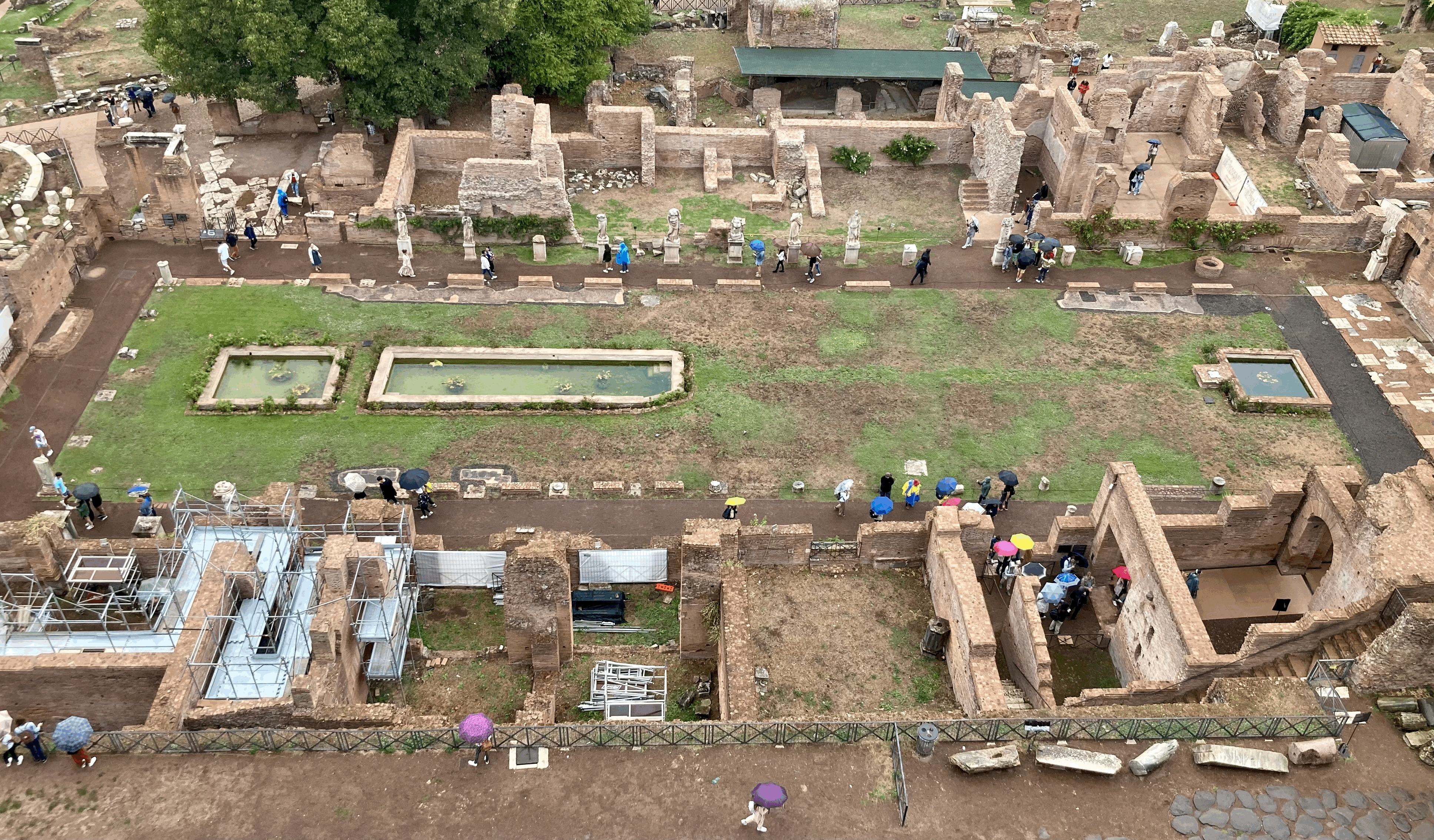 당시 귀족들의 저택, 바실리카(공회당), 법원 등이 대부분 무너져 내려 폐허와 잔재 속을 걷는 기분이었는데, 2천년 가까운 세월의 풍상을 겪으면서 그나마 이 정도라도 기초가 남아 있고, 복원을 하고 있다는 것도 대단하다 여겨졌다. 오전에 좋았던 날씨가 오후 들어 비를 뿌리기 시작해 우산과 우비 장사들이 신이 났다.