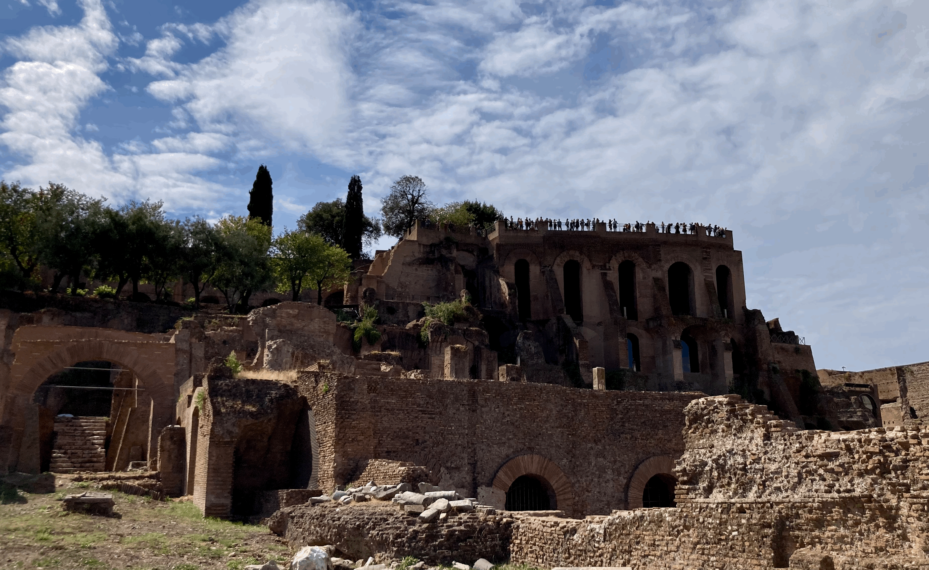 콜로세움과 달리 로마인이 거주하고 회집했던 포로 로마노는 많이 훼파돼 있는 걸 복원하고 있었다. 산책하기 딱 좋은 동네 같았는데, 중간중간 높은 언덕에선 로마 일대와 콜로세움을 바라볼 수 있게 돼 있어 찾는 이들이 많았다.