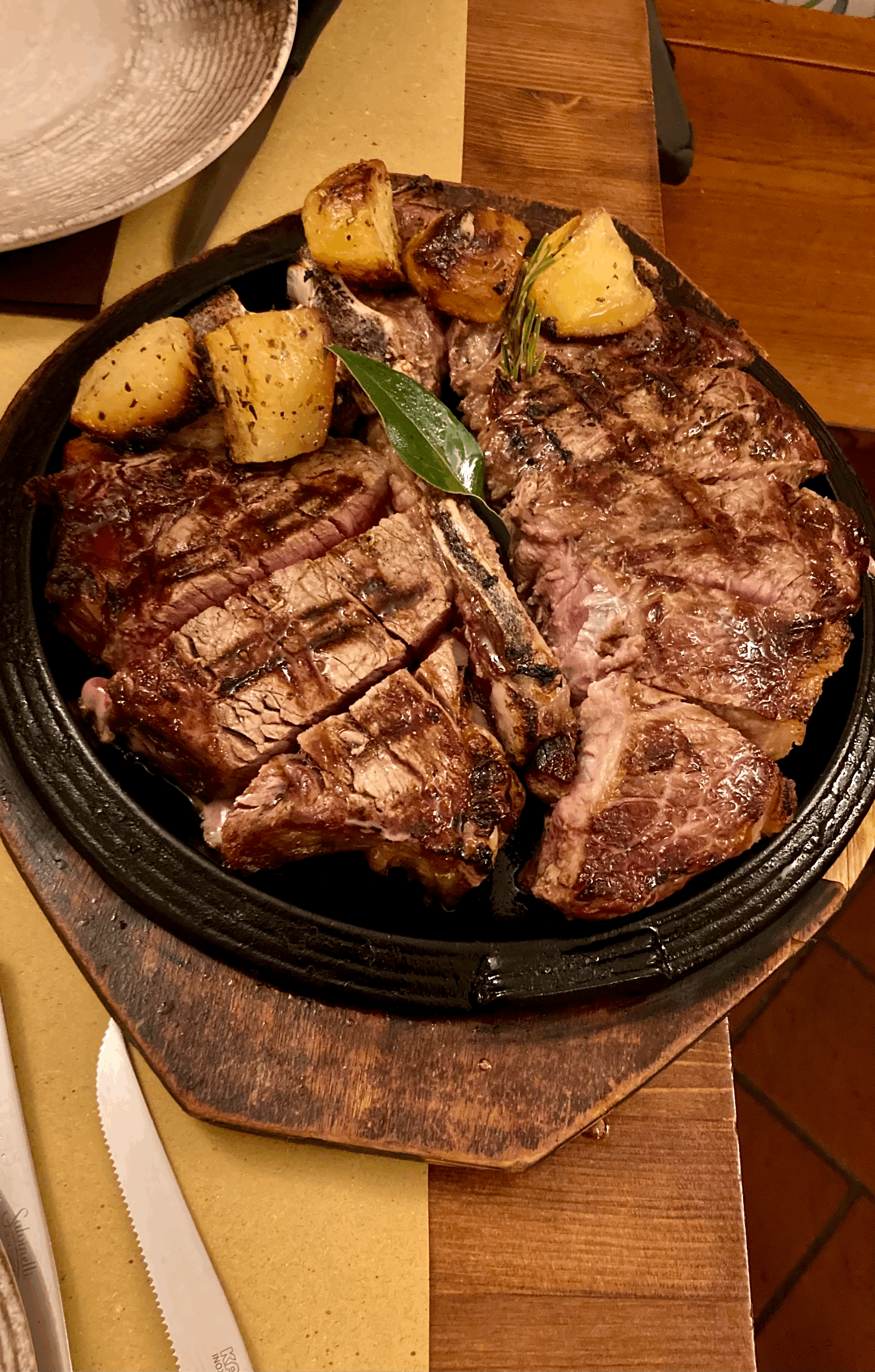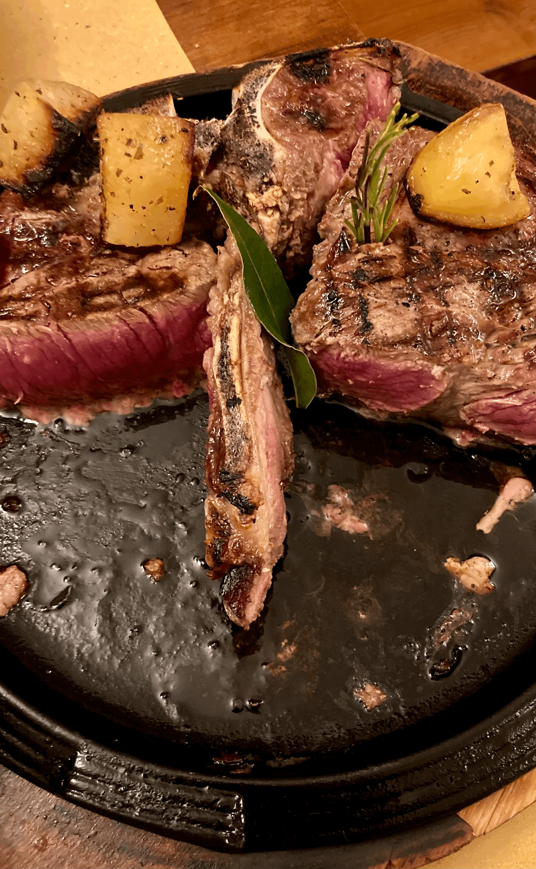 나중에 알았는데, 둘이 오는 여행객들은 '유랑' 같은 사이트에서 함께 먹을 팀을 모집해 4-6인이 1.5kg 정도를 먹는다고 한다. 이 집은 스테이크에 60 유로 정도를 청구했는데, 양으로나 가격대로나 대단한 식사였다.