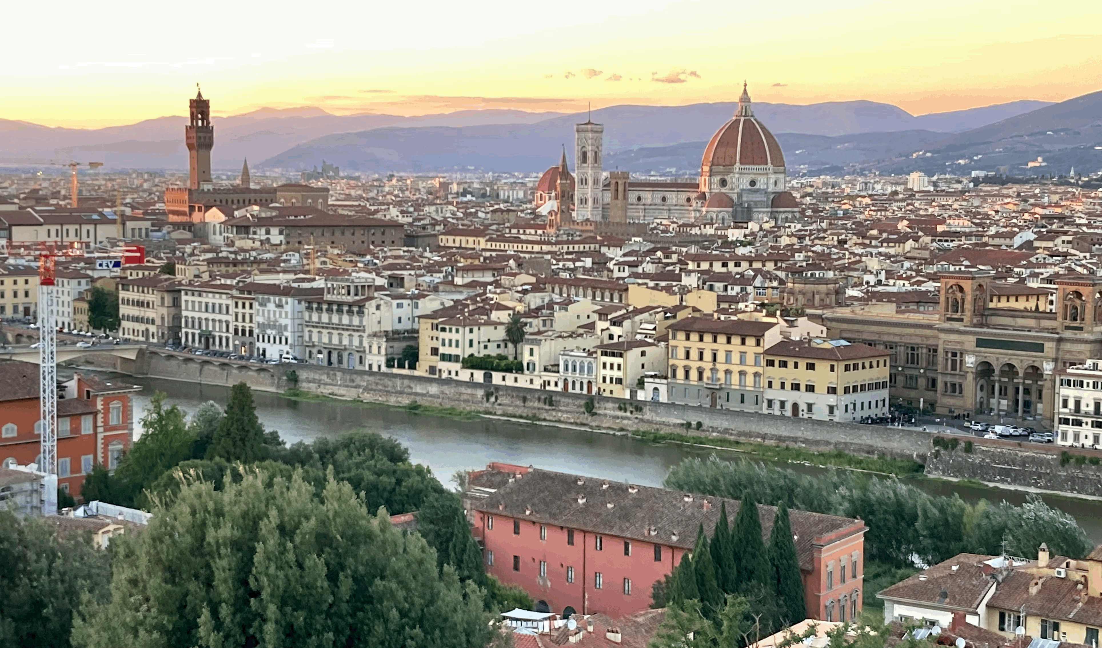 피렌체는 그리 크지 않은 도시인데, 중간에 아르노 강이 흐른다. 피렌체 일정은 대부분 두오모 성당과 조토의 성탑이 있는 쪽에 머물며 골목을 왔다갔다 하는데, 강을 건너 30분 정도 천천히 걸으면 나즈막한 언덕이 나오면서 피렌체 전경을 조망할 수 있는 미켈란젤로 광장이 나온다.