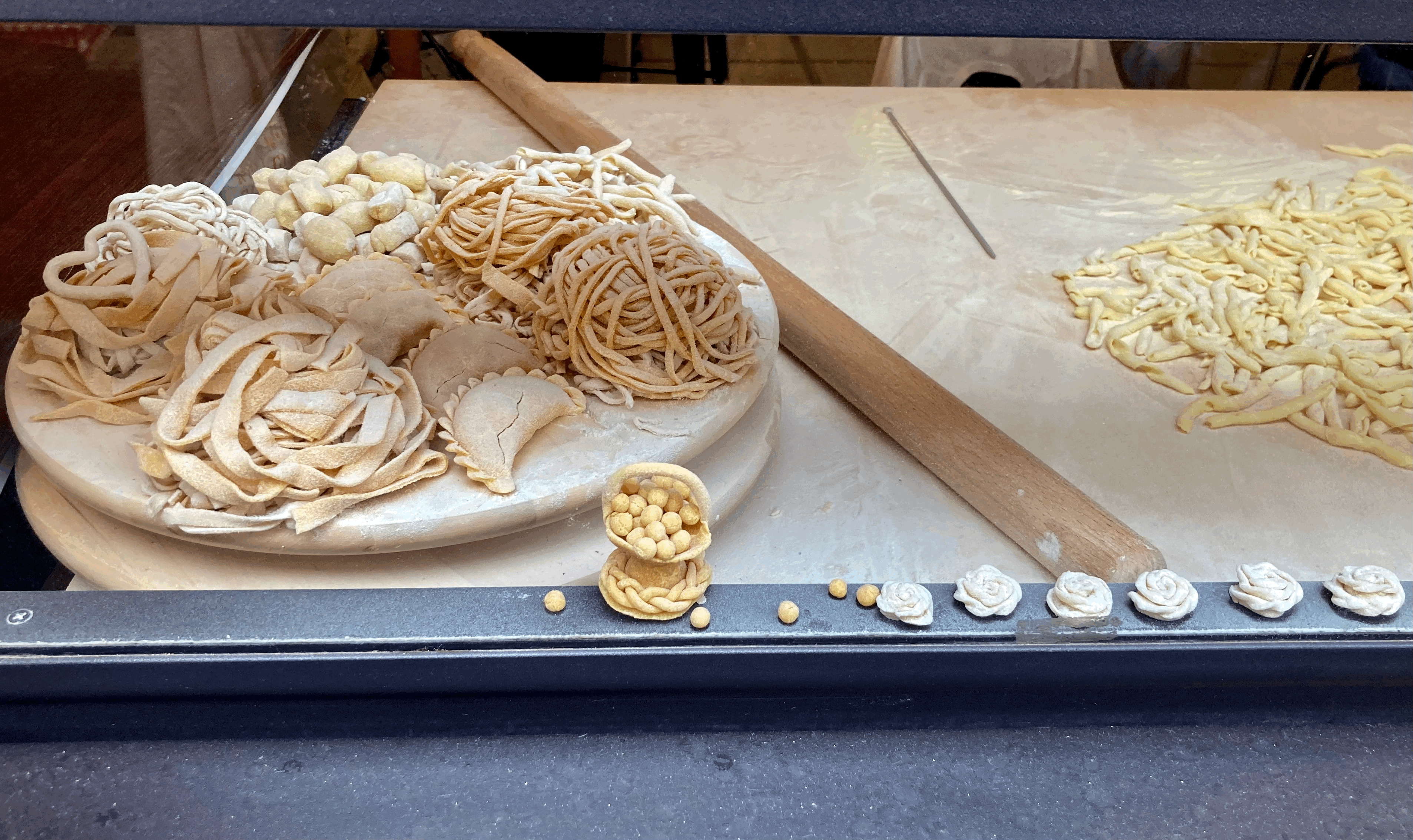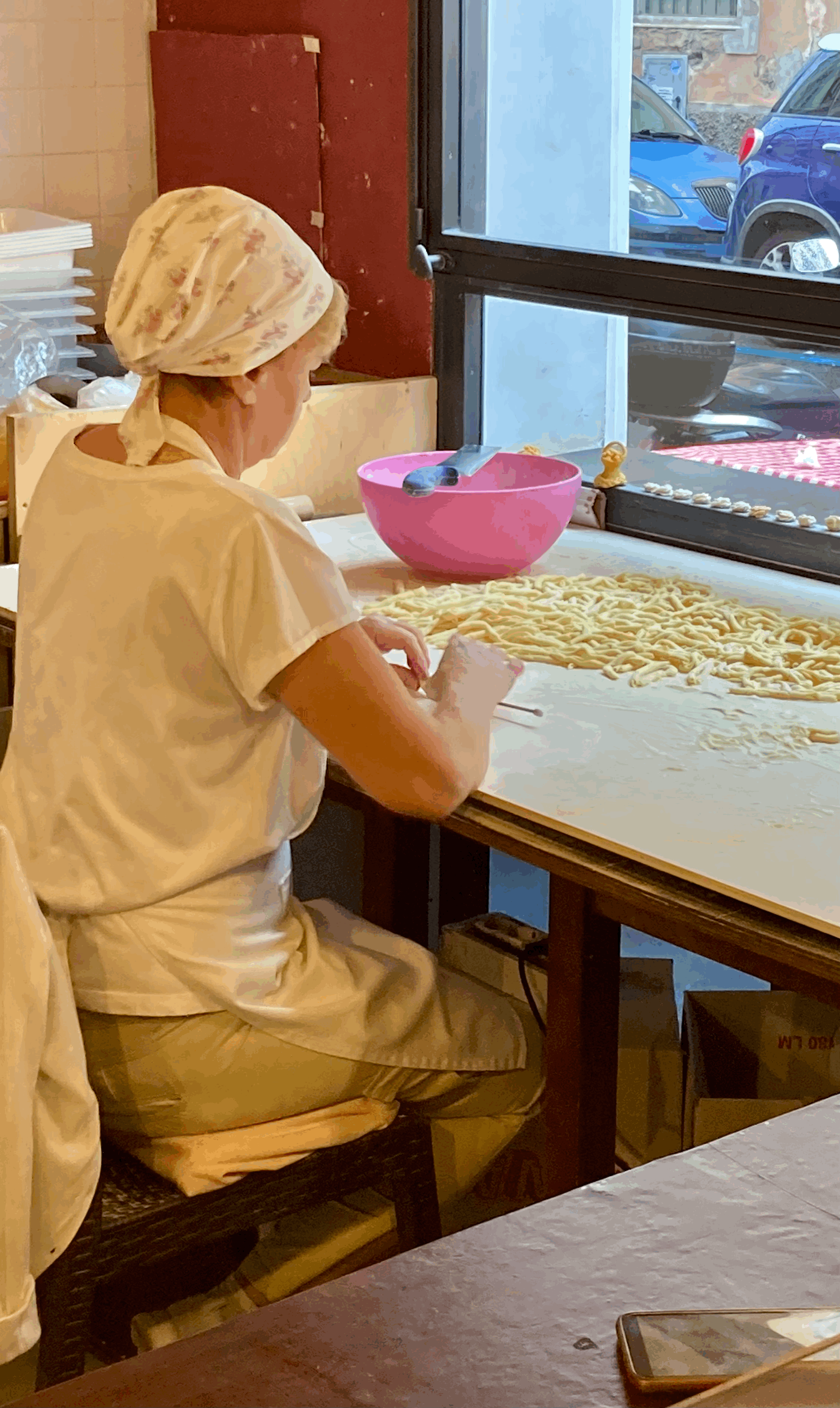 마침 우리네 만두집처럼 이 식당의 여주인으로 보이는 이가 창가에서 면을 만들고 있었다. 엄마손 수제 파스타를 맛볼 것이란 기대를 부추켰다. 조금 있다가 나온 파스타도 면발이 길지 않고 툭툭 끊어지고 꼬불꼬불한 게 꼭 우리네 생칼국수집 같았다.