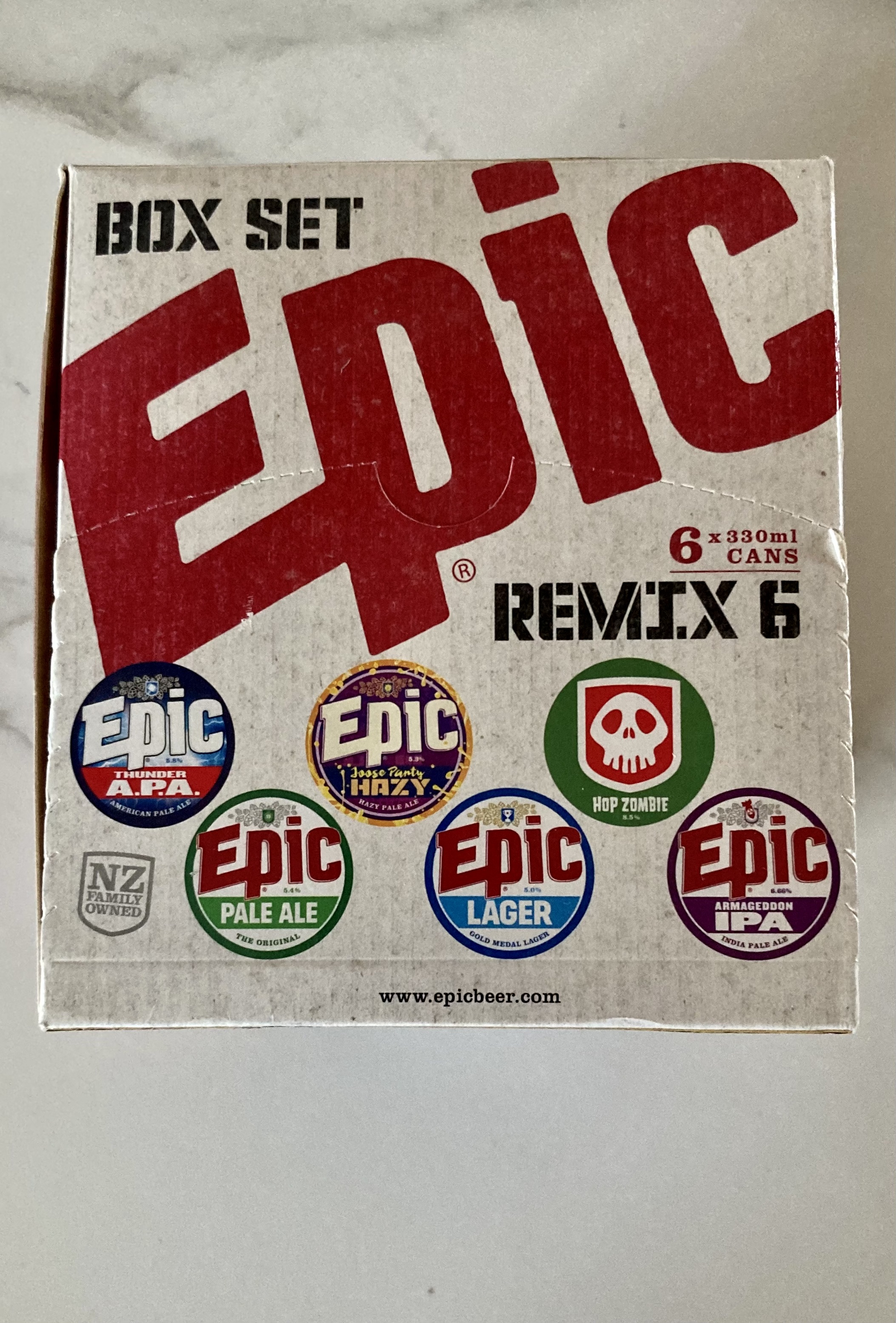 뉴질랜드를 떠나기 전에 폴 부부가 몇 가지 선물을 건네 주었는데, 그 중에 에픽(Epic)에서 나온 캔맥주 세트가 있었다. 몇 해 전에도 마트에서 파는 이 브랜드의 병맥주 세트(12/27/18)를 사 온 적이 있는데, 그걸 기억하고 있었던 모양이다. 명분은 지난 여름에 준 g의 책을 잘 읽었고 팟캐스트 잘 듣고 있다며 g에게 주는 거라는데, 그게 그거일 것이다.^^
