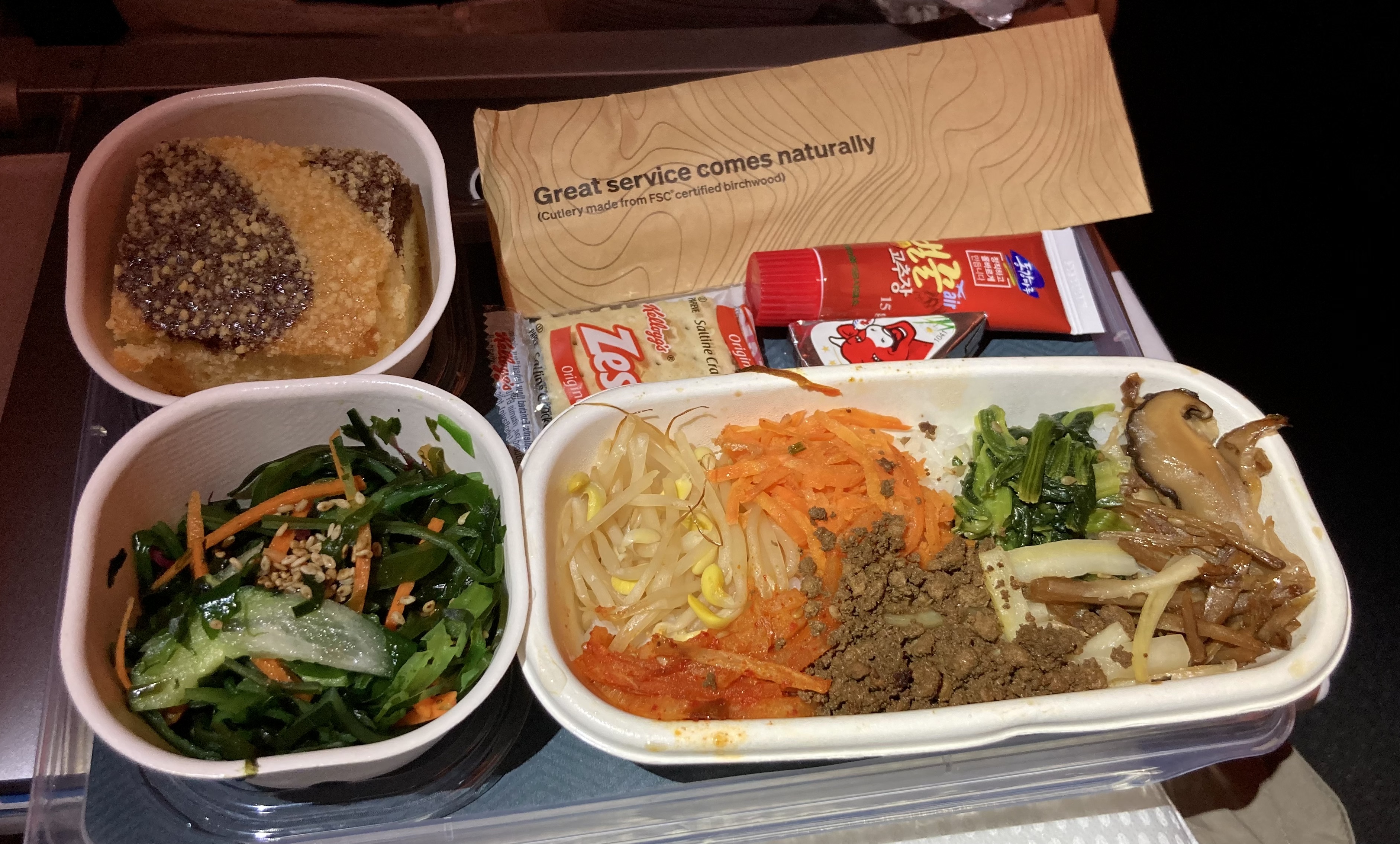 그래도 이상하게도 비행기에서 먹는 비빔밥은 언제나 맛있다. 튜브 고추장이 들어가서일까? 출국이나 귀국 편에 한 번은 먹게 된다. 대한항공이나 아시아나 같은 국적사 기내식은 좀 더 낫지 않을까 싶은데, 항공료가 뛰어서 탑승 기회가 오려나 모르겠다. 내가 지금까지 먹어본 것 가운데 가장 좋았던 것은 전일본공수(ANA, 9/1/12)이었다.