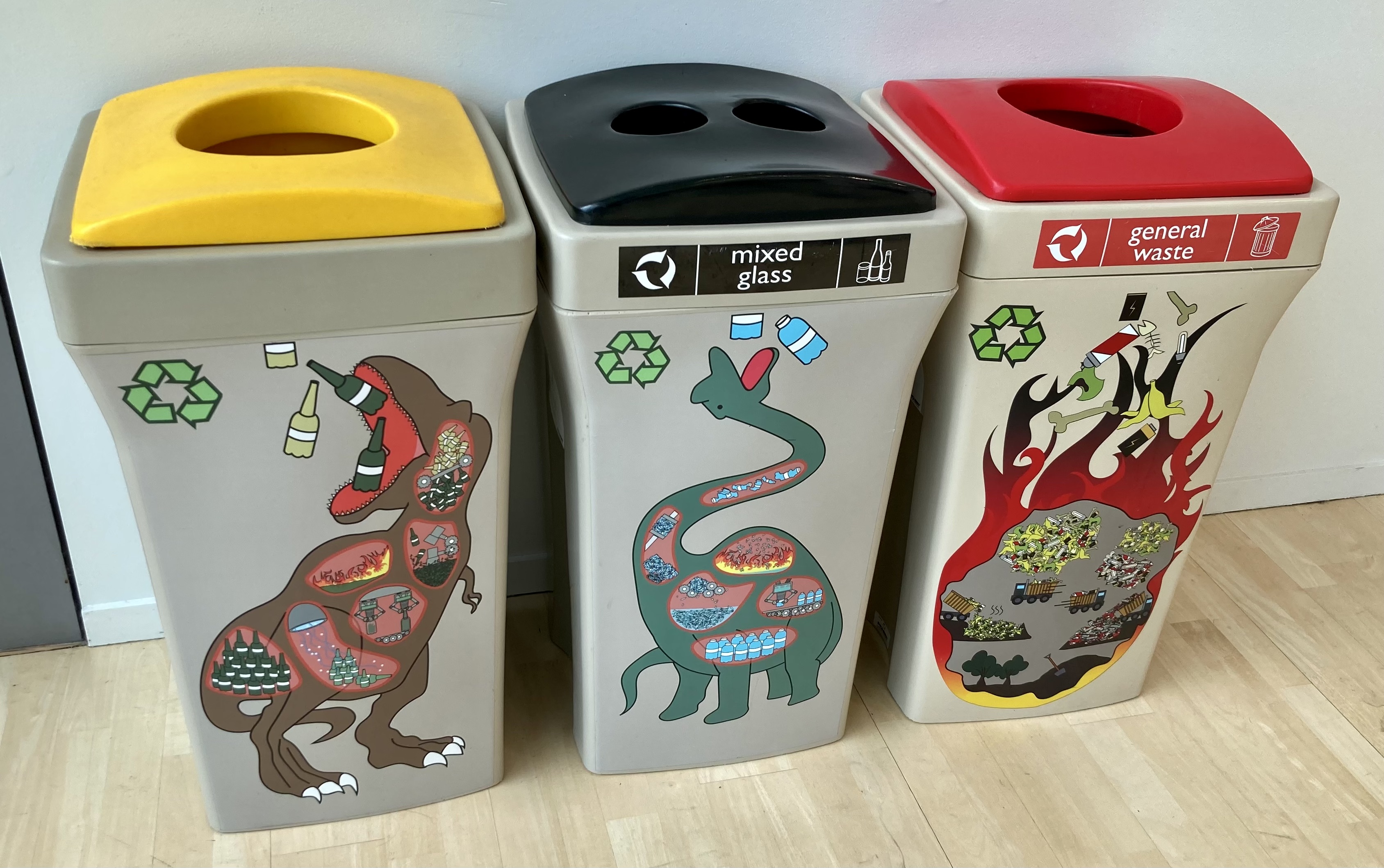 아무래도 공공 장소의 복도나 실내에 놓는 쓰레기통들은 좀 더 꾸미기 마련인데, 와이카토 대학 음악홀과 아트 페어가 열린 The Cloud에 놓인 쓰레기통들이 그랬다. 저쯤 되면 공간을 구성하는 중요한 요소가 되면서 그냥 쓰레기통이라 부르기보다는, 뭔가 다른 이름으로 불러야 할듯 싶었다.