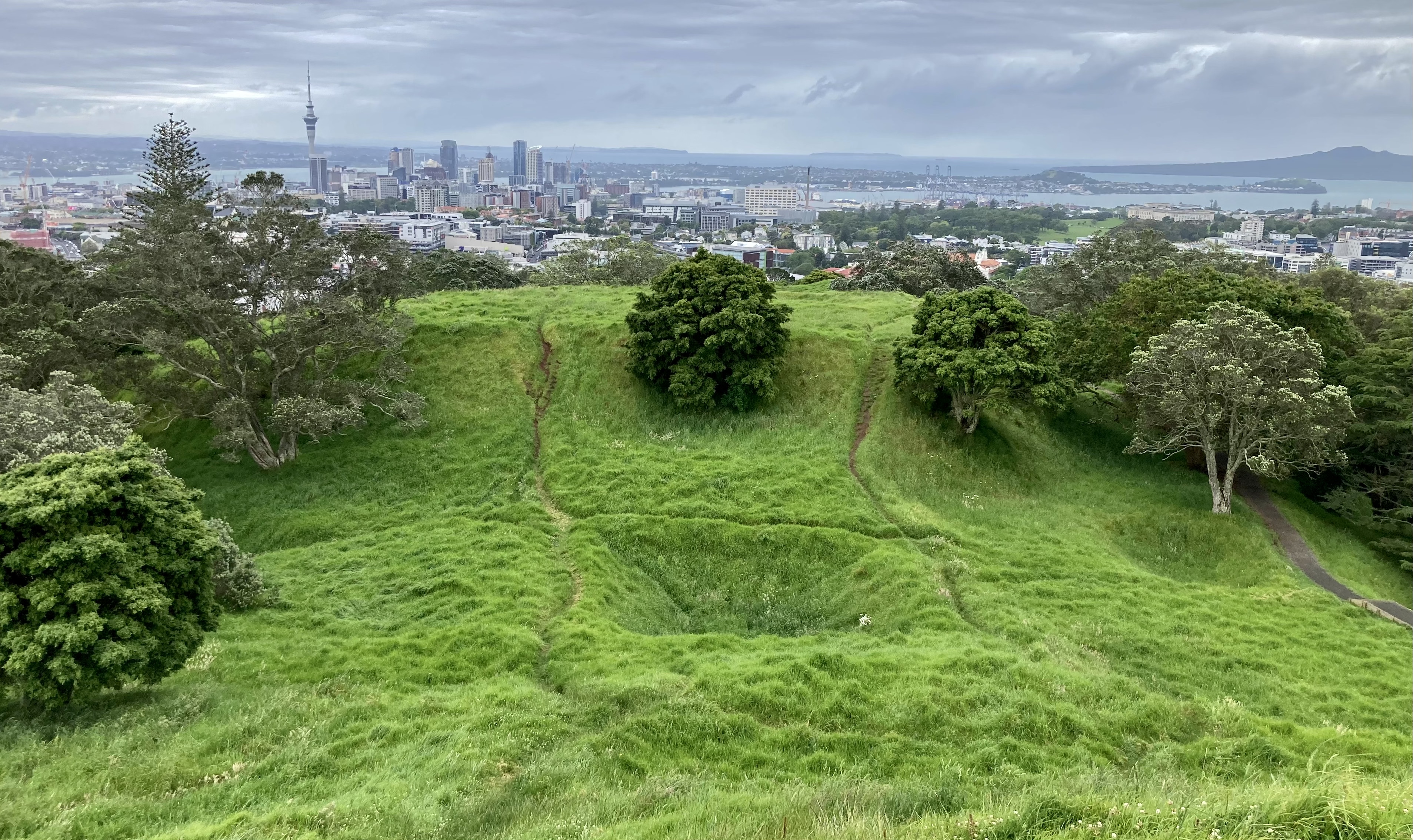 정상 부분은 보수 공사 중으로 진입을 막고 있었지만, 바로 옆까지 올라가는 것으로도 충분했다. 저 아래로 오클랜드 시내가 내려다 보였기 때문이다. 바람막이 옷을 입고 워킹 보드를 오르내리는 사람들이 마치 순례자들 같았다.