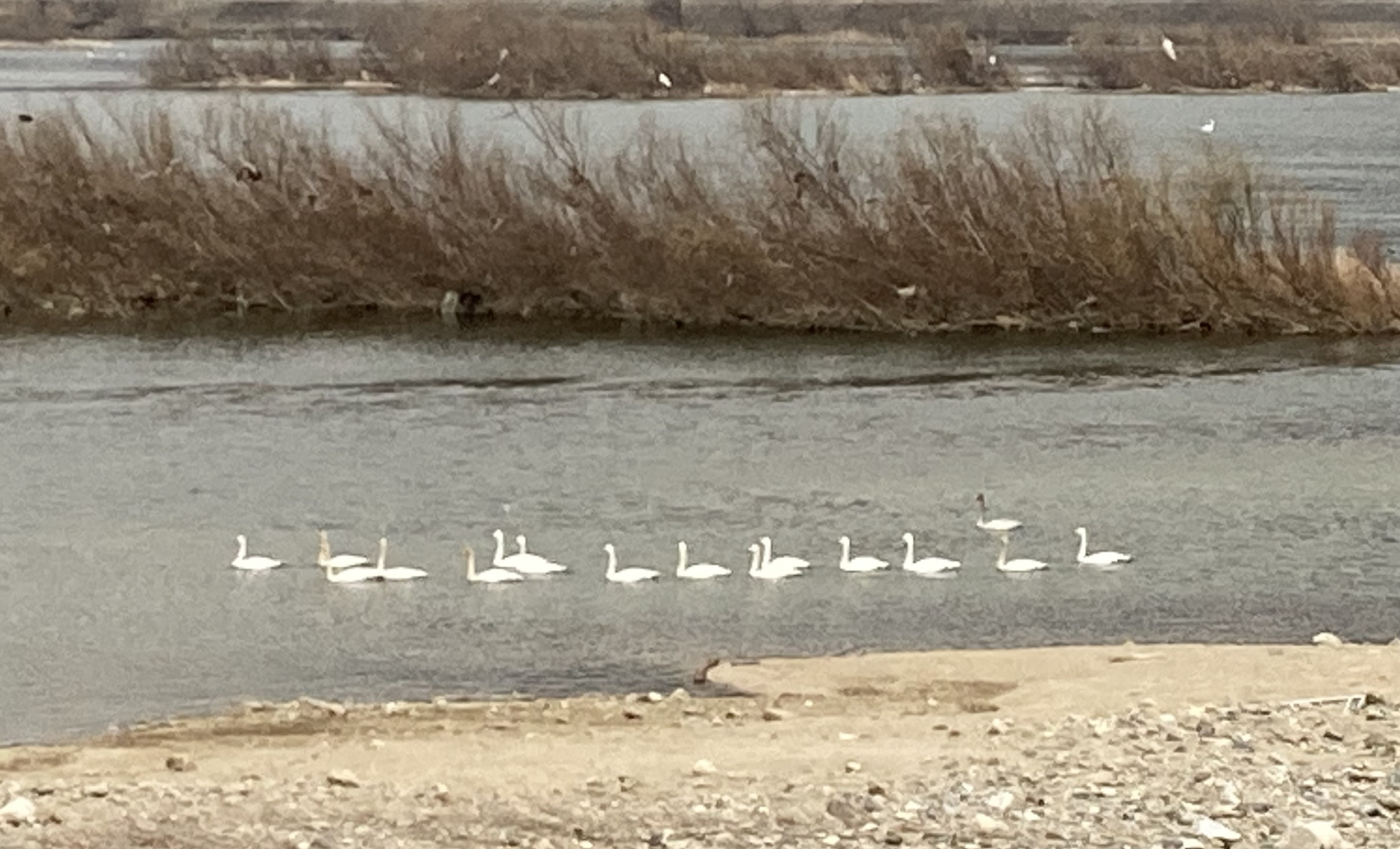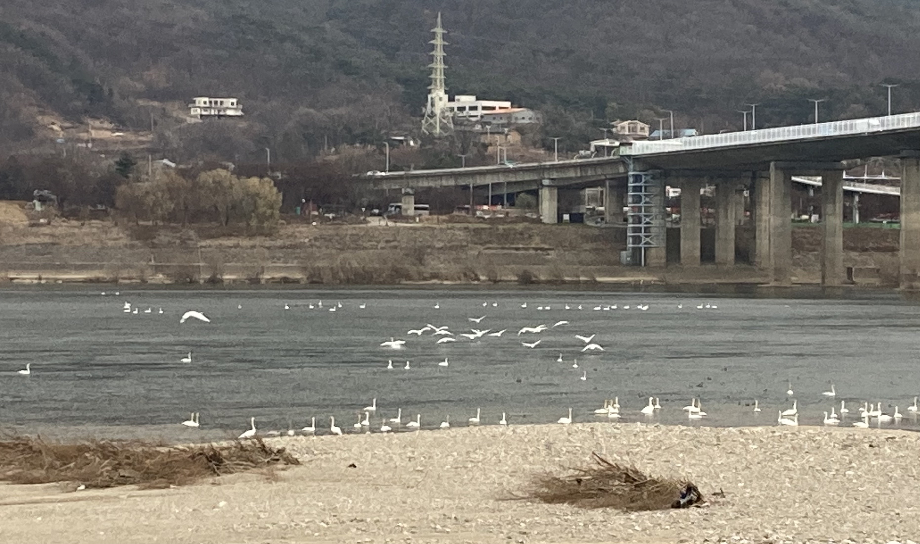 요즘 팔당대교 아래 한강변엔 철새들이 한창이다. 어디서 이리 많이 날아왔는지 여러 종류의 철새들이 옹기종기 모여 앉아 산보객들의 눈을 즐겁게하고 탐조 촬영자들을 불러모은다. 시간대에 따라 다르겠지만, 철새들은 대개 강물과 모래톱이 경계를 이루는 부분에 조용히들 앉아 있는데, 가금 유유히 강물을 지나가는 장면을 연출하기도 한다.