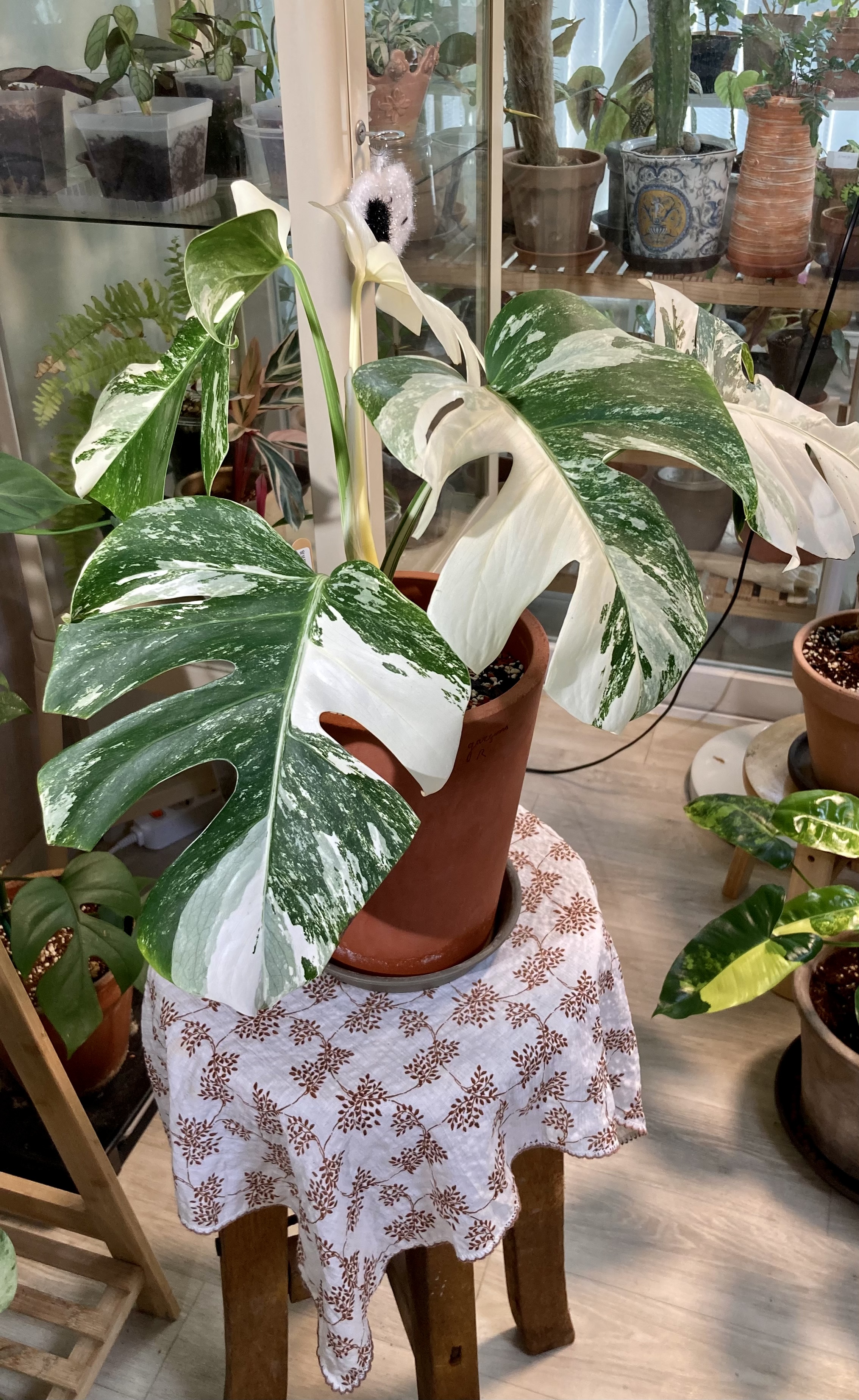 그 중 스포트라이트를 받는 식물이 있었으니, 알보 몬스테라다. 우리야 그 존재나 가치를 모르고 별 관심도 없지만, 한때, 아니 지금도 식물 기르는 이들의 로망 중 하나라고 한다. 잘 아는 이에게 싸게 분양 받았다는데, 고상한 품격이 느껴지는 게 대접 받을 만 했다.