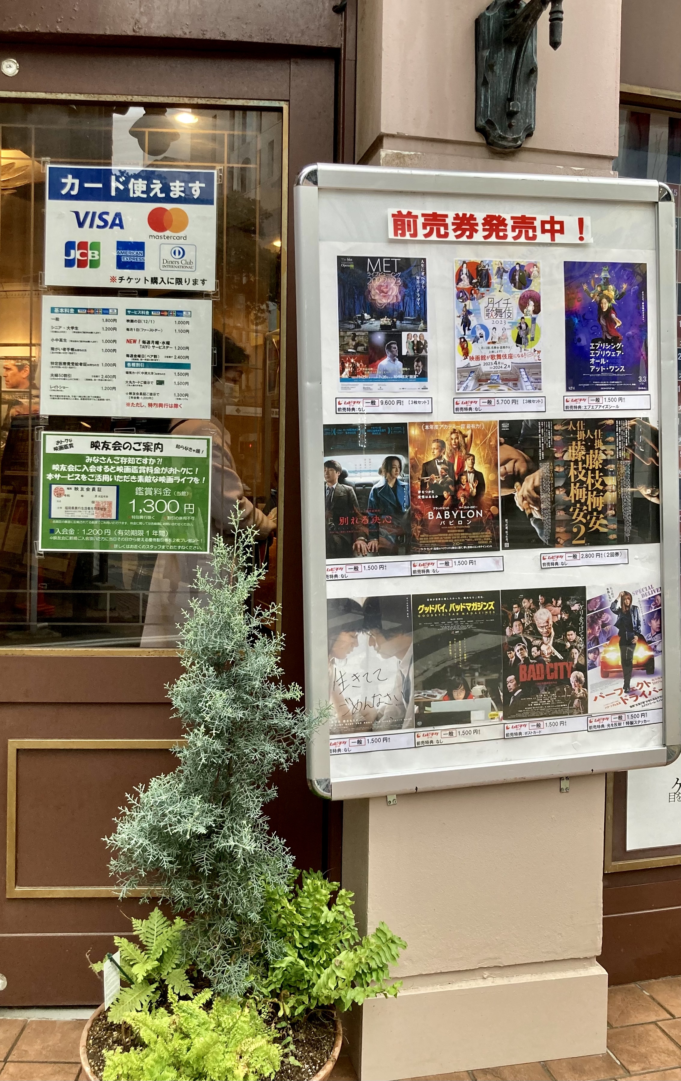 외관은 이래도 멀티 플렉스로 운영되는지 상영 예정작들을 많이 안내하고 있었다. <헤어질 결심> <바빌론> 등이 보인다. 우리는 예매(豫賣)라고 하는데, 일본은 전매(前賣)라고 하는 것도 흥미롭다. 영화 관람료는 1,800엔인데, 대학생 할인(1,200엔) 등 이런저런 할인 혜택이 보인다.