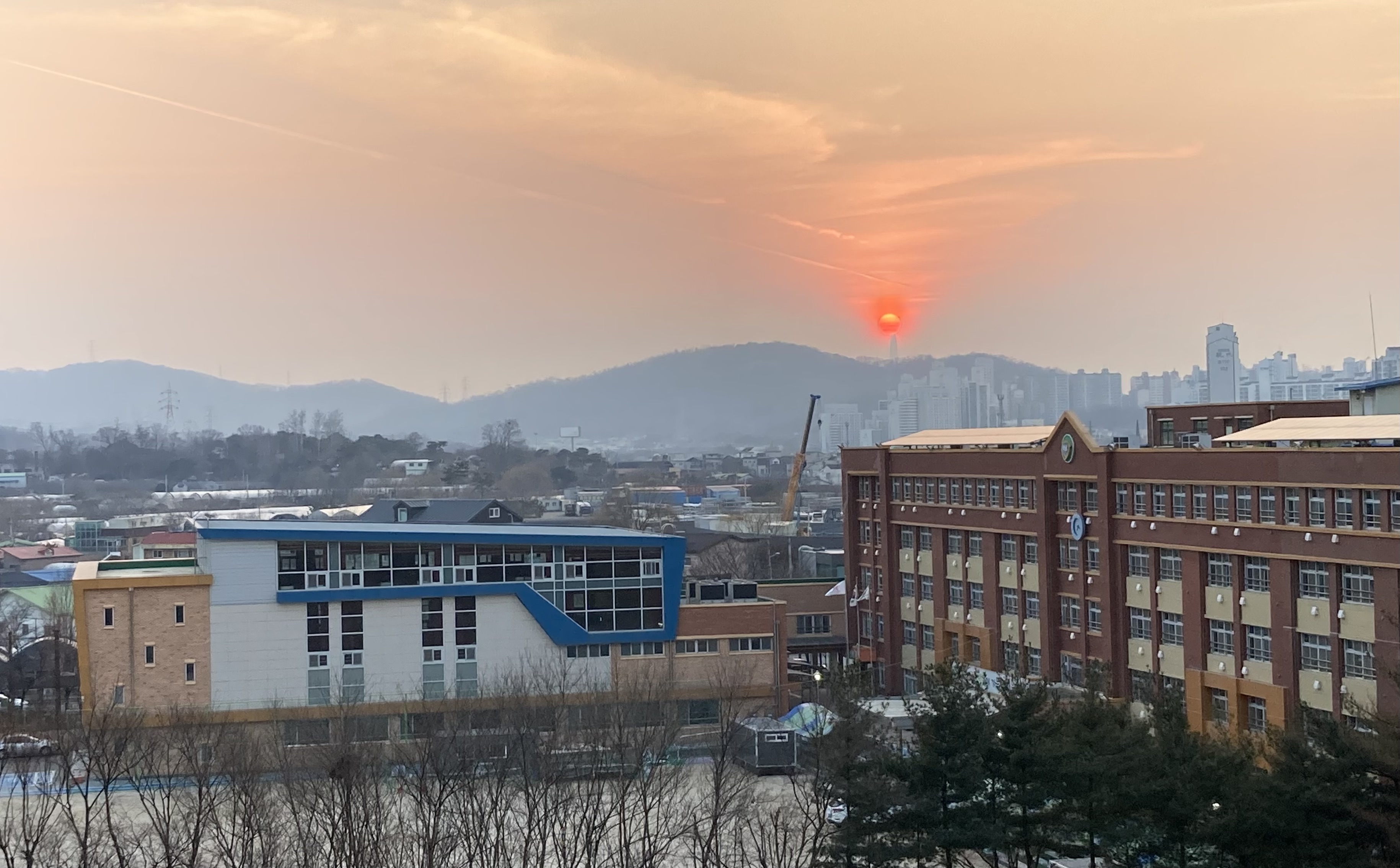 요즘은 아주 빠알간 해가 이성산 위에 제법 오래 머물다가 산 아래로 지면서 연출하는 노을이 점점 진해지고 있다. 거실에 앉아서도 볼 수 있지만 식구들의 찬탄을 내지르게 하면서 베란다에 나가 일주일에 한두 번씩은 사진을 찍게 만드는 풍경이다.