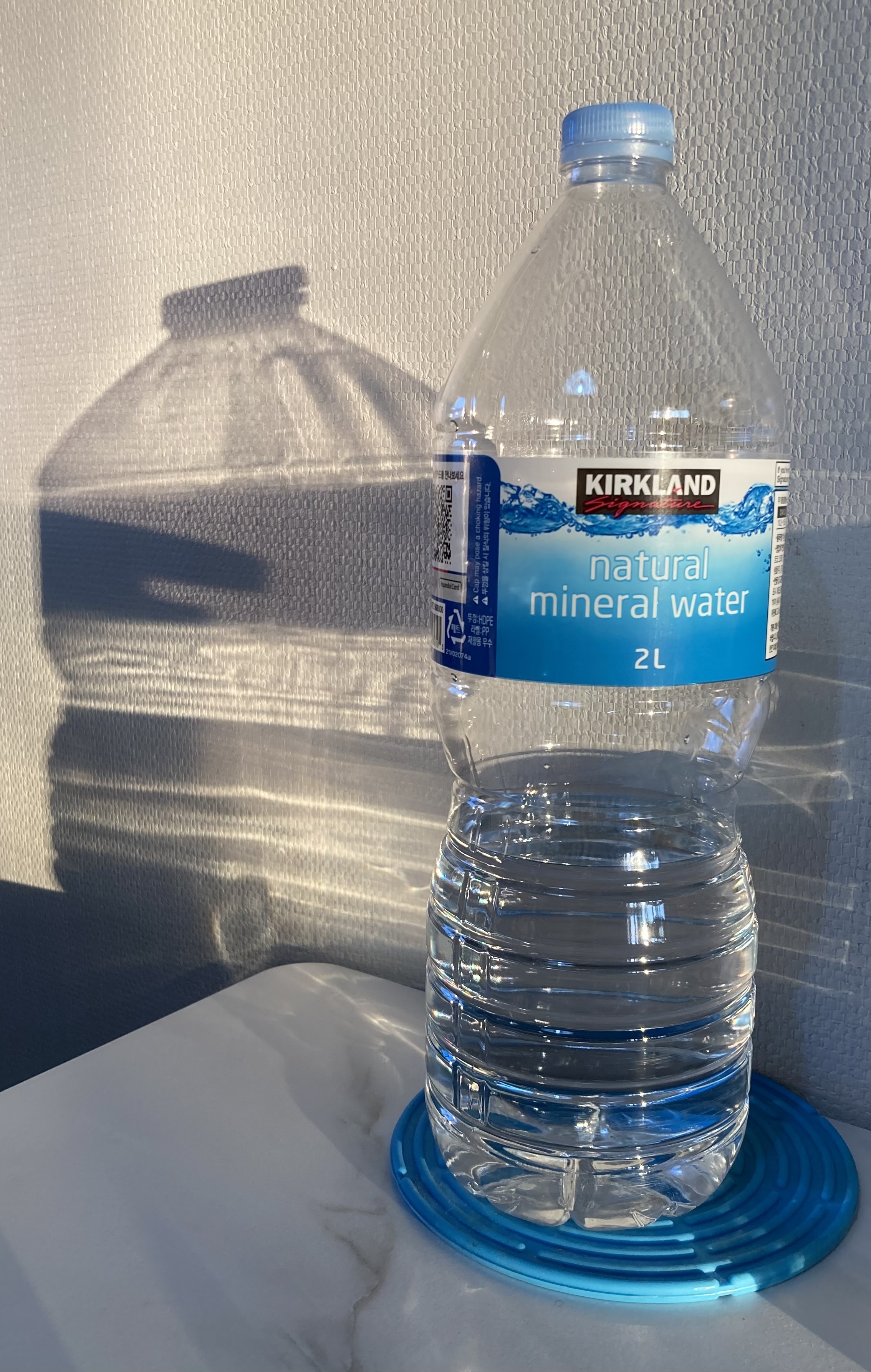 그보다 조금 이른 오후 너댓시 경엔 햇살이 거실 지나 식탁까지 길게 들어오는데, 마침 식탁 위에 놓인 2리터 물병을 5리터 또는 10리터 짜리로 불려주는 묘기를 연출한다. 물병이야 저리 살이 쪄도 상관없지만, 사람을 저리 보이지 않게 해 다행이다.^^