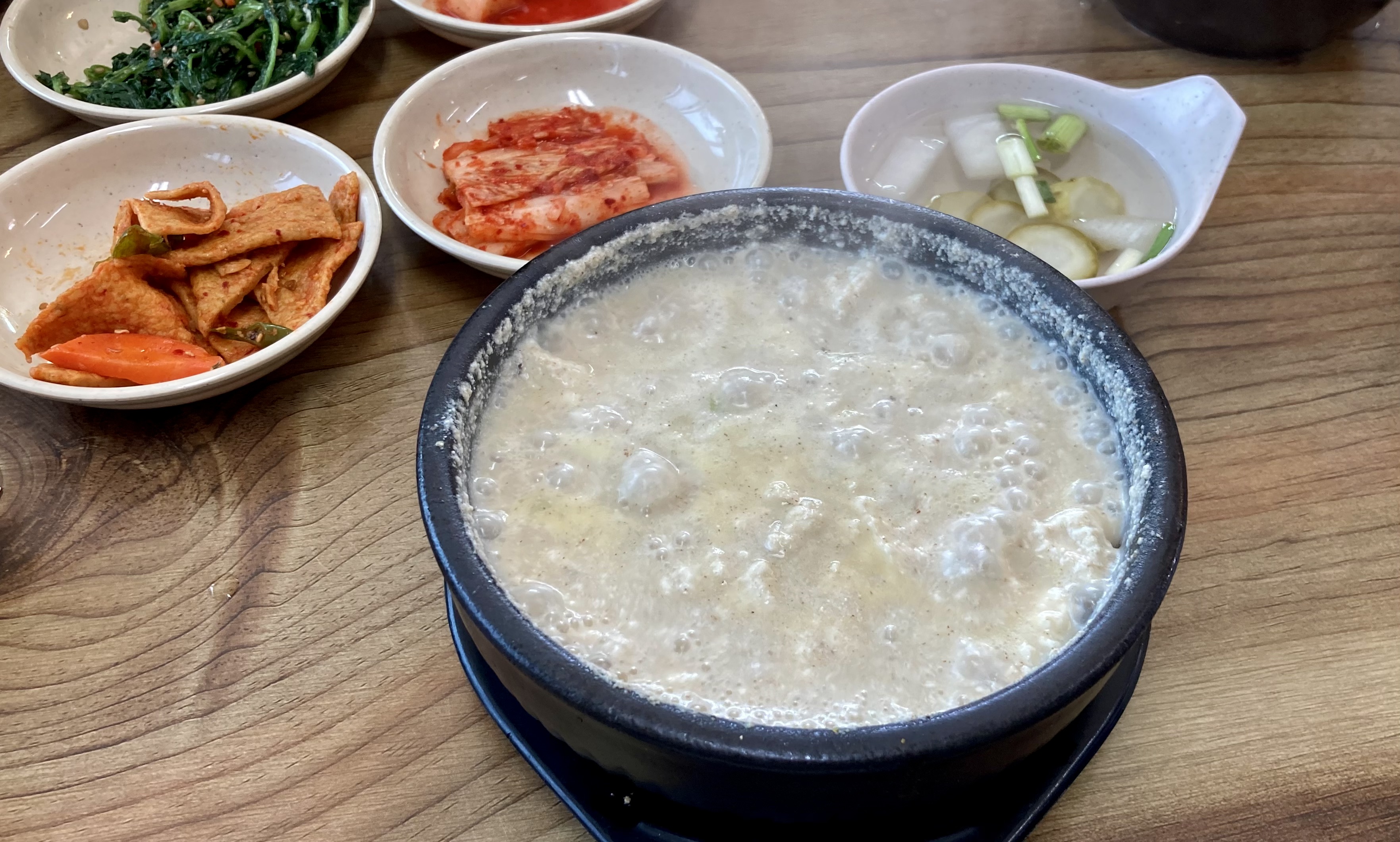 하나씩 시켜 나눠 먹었는데, 둘 다 간이 세지 않아 밥 없이도 푹푹 떠먹게 된다. 뭉쳐 있지도, 연두부처럼 물컹하지도 않은 게 먹기 딱 좋다. 하얀 건 젓국 간 맛이 나고, 빨간 건 고추기름을 넣지 않아 둘 다 담백한 맛이다. 무척 뜨겁게 나와 후후 불면서 식혀 먹는 재미도 있다. 먹고 근처 강변 뚝방길이나 나무고아원을 걷는 것도 추천 코스다.