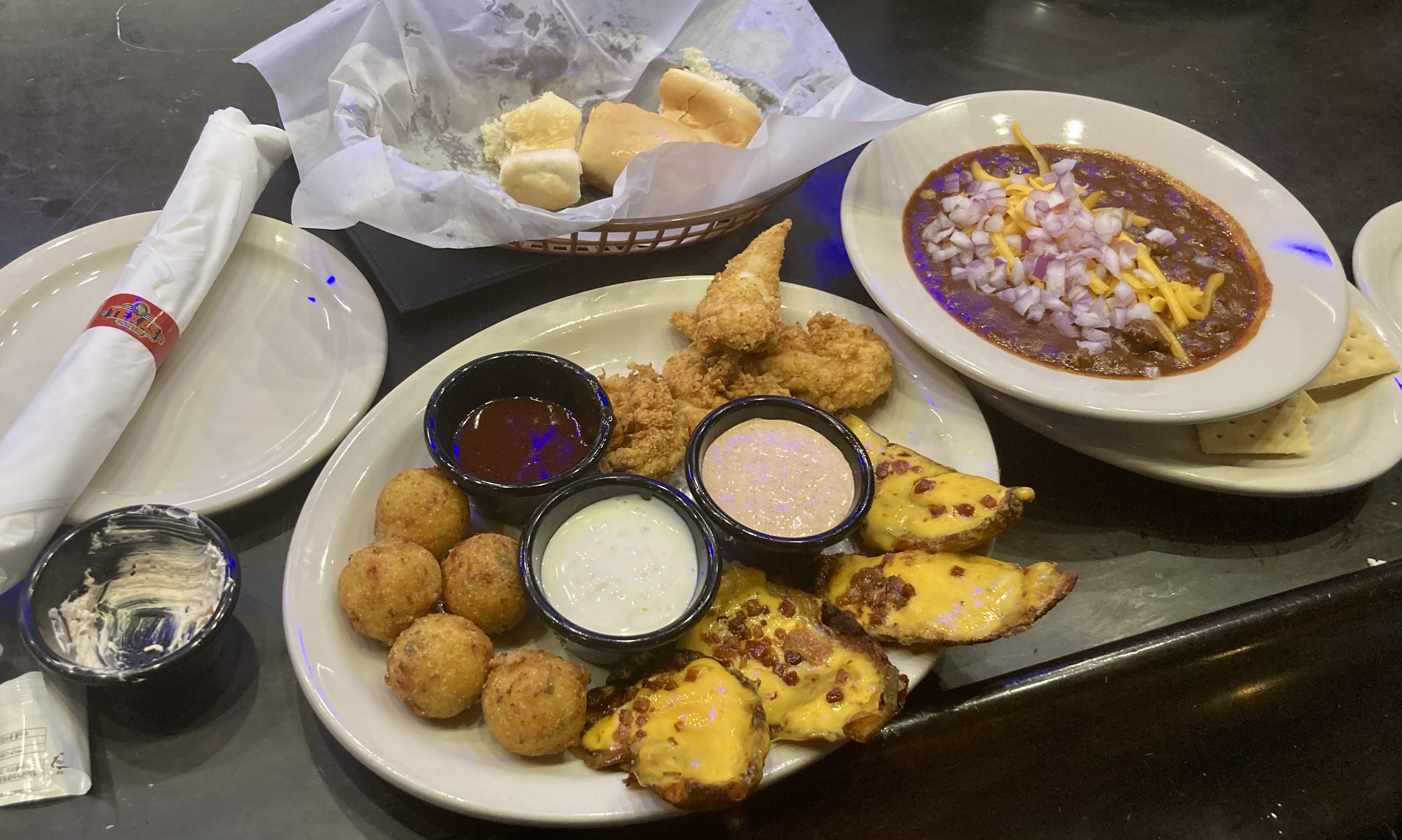 남양주 다산지구에 있는 현대 아울렛엔 미국 본토 맛을 낸다는 텍사스 로드하우스가 있는데, 가볍게 먹을 걸 찾아보다가 샘플러와 레드 칠리 수프를 시켰다. 이런 레스토랑들은 식전 빵이 나와 둘이 이 정도면 포만감까진 아니어도 기분 좋은 시간을 가질 수 있다. 샘플을 후진 걸로 만드는 집은 없을 테니 말이다.