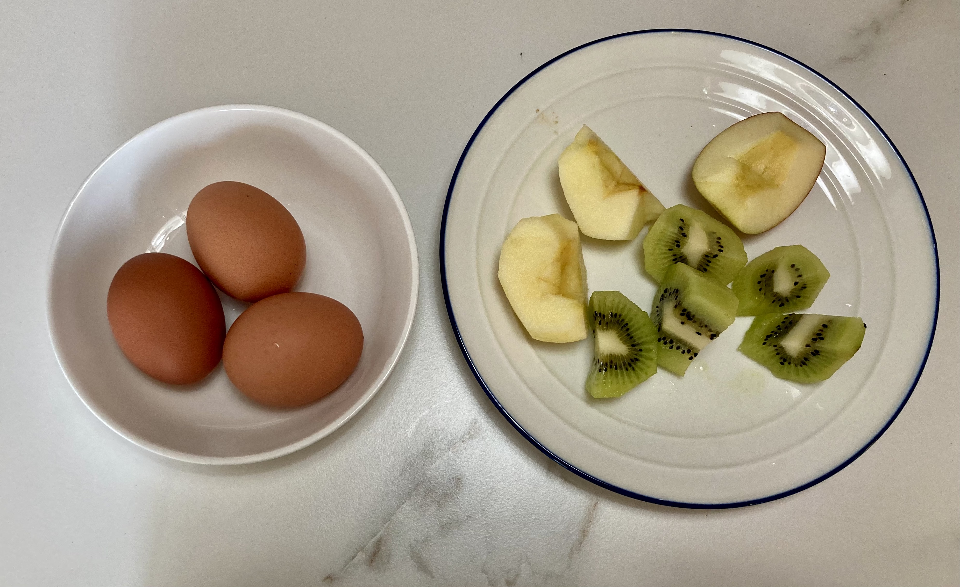 찐계란(코스트코나 트레이더스는 요즘 왕란이 안 보이고 특란을 파는데 작은 편이다)과 키위 그리고 못난이 사과에 반의 반쪽으로 자른 피케빵 샌드위치까지 모두 고만고만한 크기로 어깨를 나란히 했다. 우유 반 잔에 커피까지 자그만스들이 콜라보해서 아침을 책임져 주었다.