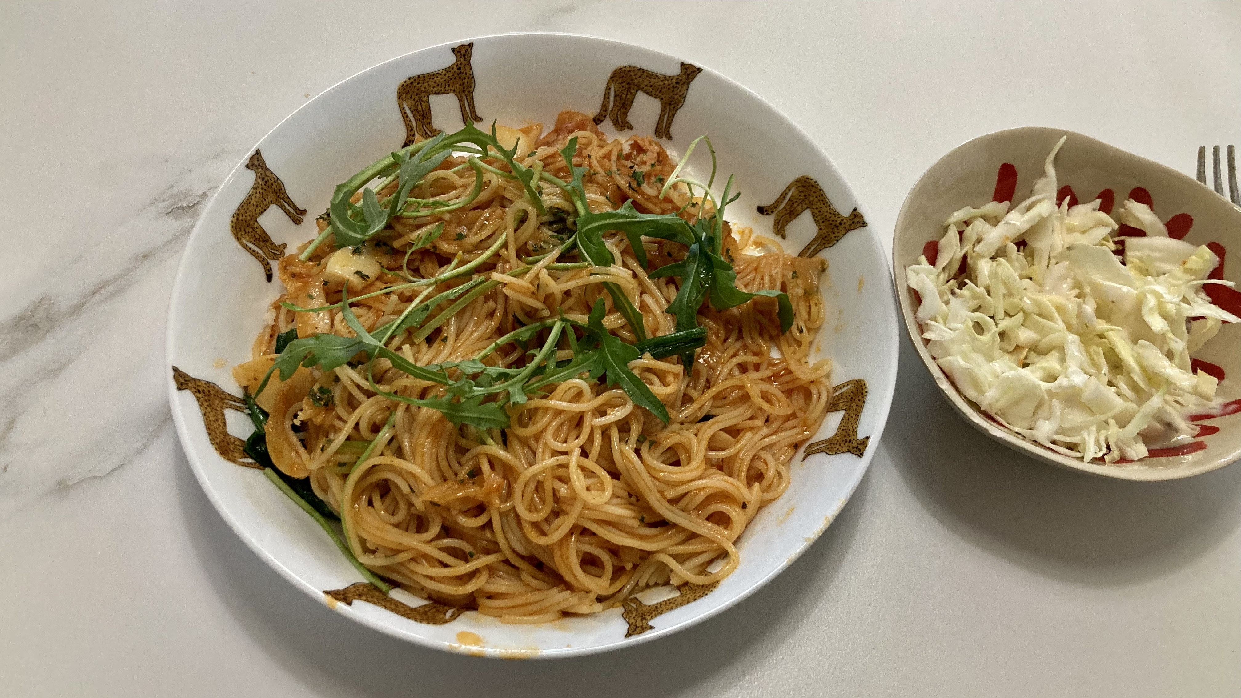 지난 주말 점심이 다 됐다길래 식탁에 앉으니, 차려진 파스타가 보통 때와 조금 달라 보였다. 면발이 보통 파스타보다 훨씬 가느다란 게 중면 정도 돼 보여 이거 파스타 맞냐고 했더니, 이름도 근사한 Angel Hair 면으로 만든 파스타가 맞다고 한다.