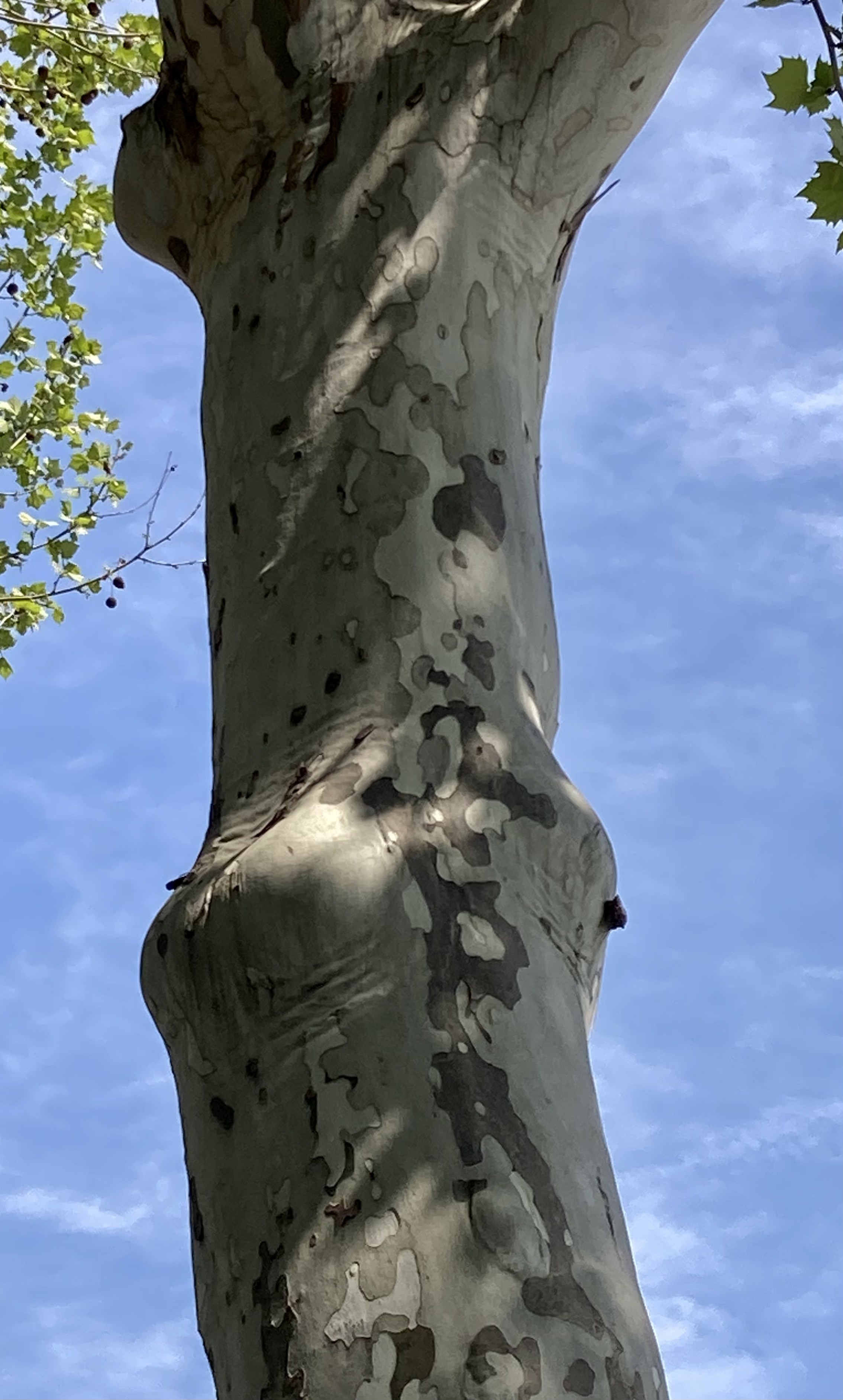 플라타너스는 매끈한 나무 줄기가 특징적인데, 버즘처럼 보이는 군복 무늬 줄기가 투박하고 단단해 보인다. 잎들이 다 떨어져 가지만 남은 한겨울엔 가지치기를 지나칠 정도로 많이 해 단순해지는 바람에 수채화 그리기 좋은 나무가 된다.