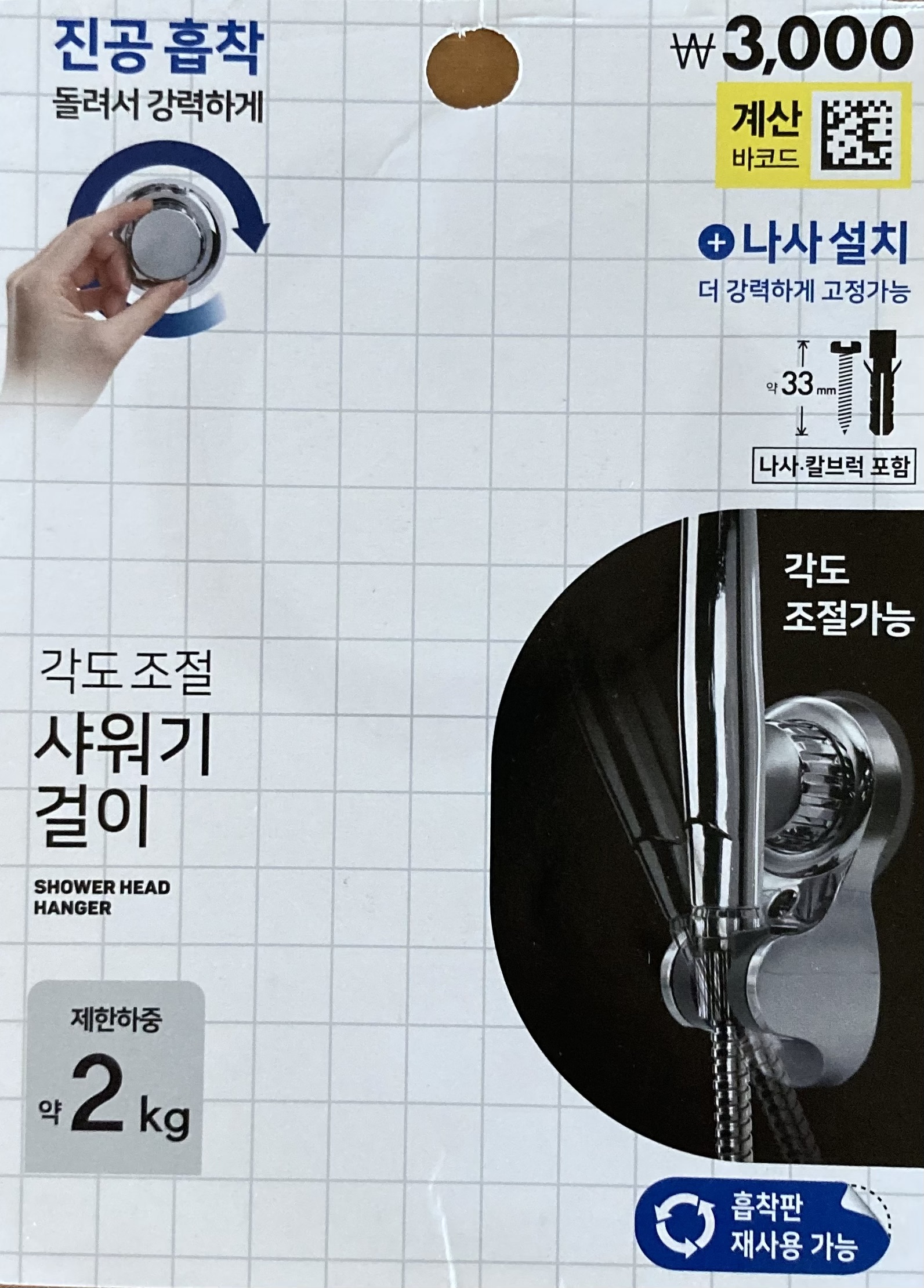 안방 화장실 샤워기 걸이가 각도가 안 맞아 영 불편했다. 조금 아랫쪽으로 뿌려주면 좋을 텐데, 먼 데로 분사하는 바람에 끄트머리를 살짝 걸쳐 겨우 쓰고 있었디. 두어 번 바꿔도 봤지만 별 소득이 없던 차에, 스타필드 지하1층에 새로 생긴 다이소에 가 봤다.