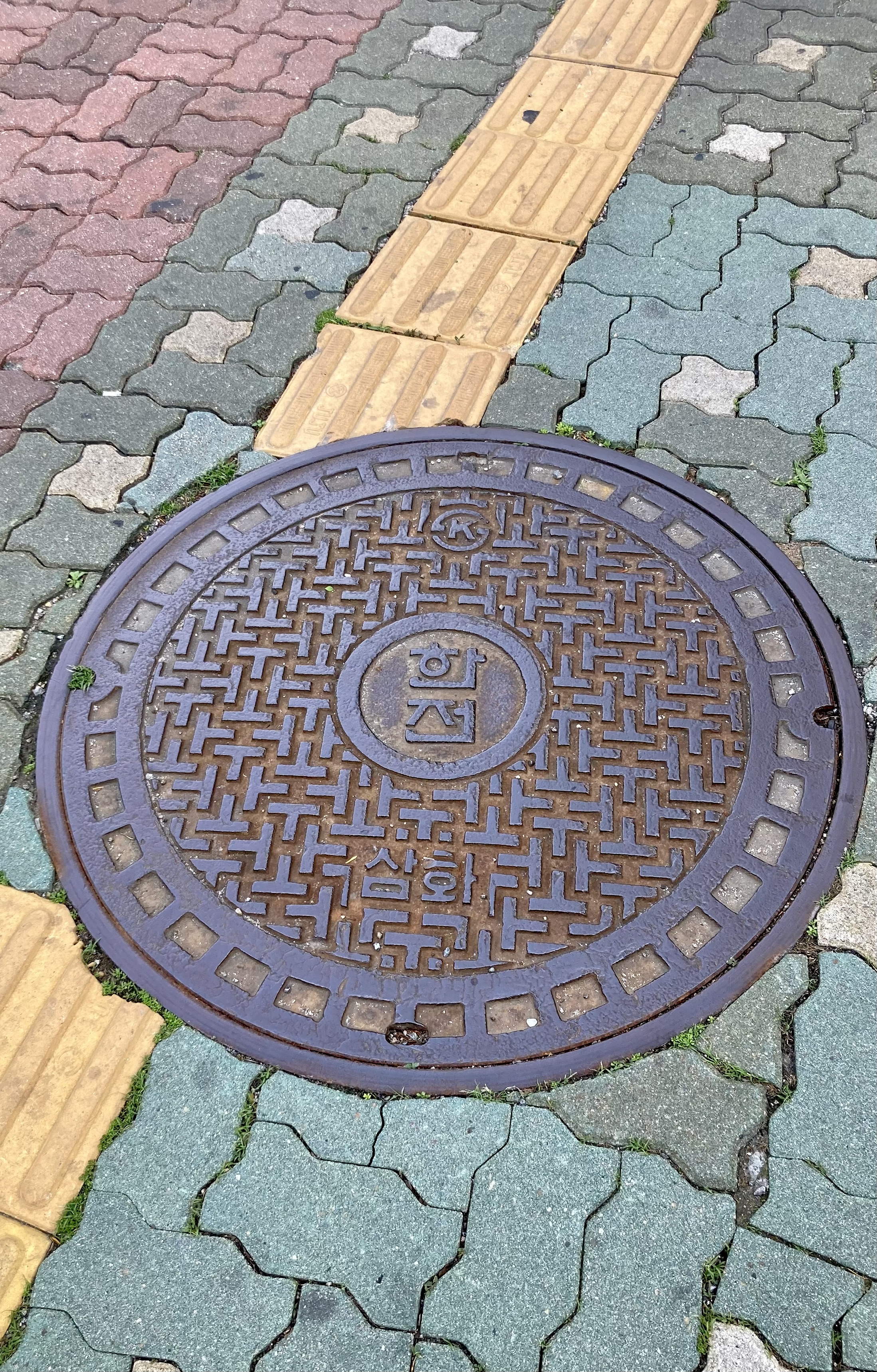 같은 데서 설치한 맨홀이더라도 설치된 시기나 용도애 따라 다영한 모양과 크기를 하고 있는 게 흥미로웠다. 가장 오래된 듯해 보이는 것은 커다란 원형이었는데, 그 옆에는 직사각형 형태에 붉은 톤의 페인트칠에 테두리까지 해 놓아 도드라지게 보이는 맨홀이 자리 잡고 있었다.