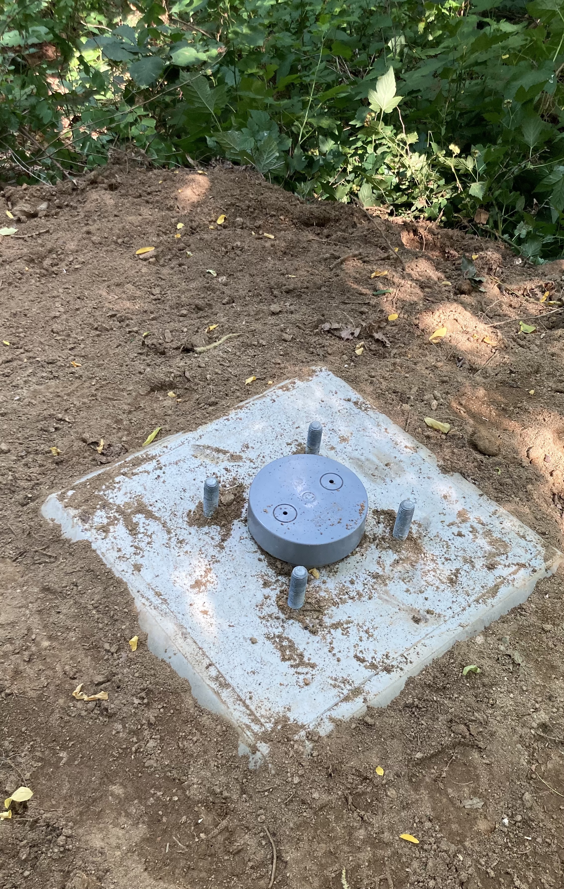 못 보던 게 눈에 띄었는데, 여기저기 큰 구멍이 뚫린 마름모꼴 콘크리트 구조물이었다. 무엇에 쓰는 건지는 조금 걷다 보니 바로 풀렸다. 등산로 중간중간에 파서 묻어 놓았는데, 구멍은 전선 파이프가 통과하는 보안등의 등주였다. 한 면이 얼추 50cm는 넘어 보였으니 꽤 무거워 사람이 들긴 어렵고, 미니 포크레인 같은 게 들고 파묻은 것 같았다.
