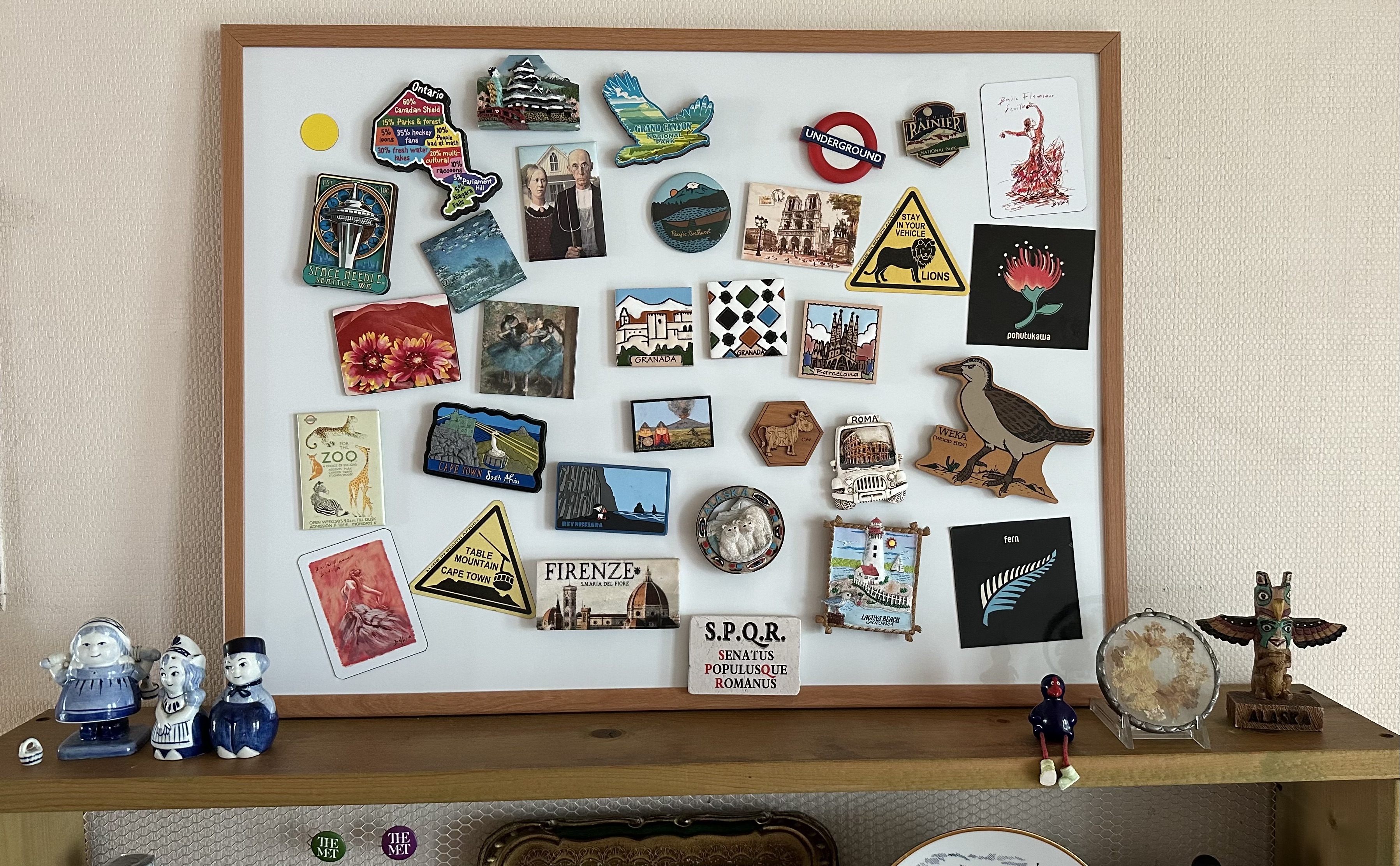 선물 받은 것도 두어 개 있지만, 대부분 20여년간 갔던 나라, 도시들에서 기념으로 고른 것들인지라 추억이 있고 애정이 간다. 앞으로 얼마나 여행을 다닐 수 있을지 모르겠지만, 새로운 도시의 기념품샵에서 눈에 띄는 것들이 캐리어에 실려와 몇 개 더 자리를 차지하거나 꽉 차면 선수 교체를 하게 될 것이다. 음~ 다음엔 어딜 가서 어떻게 생긴 걸 골라올까.