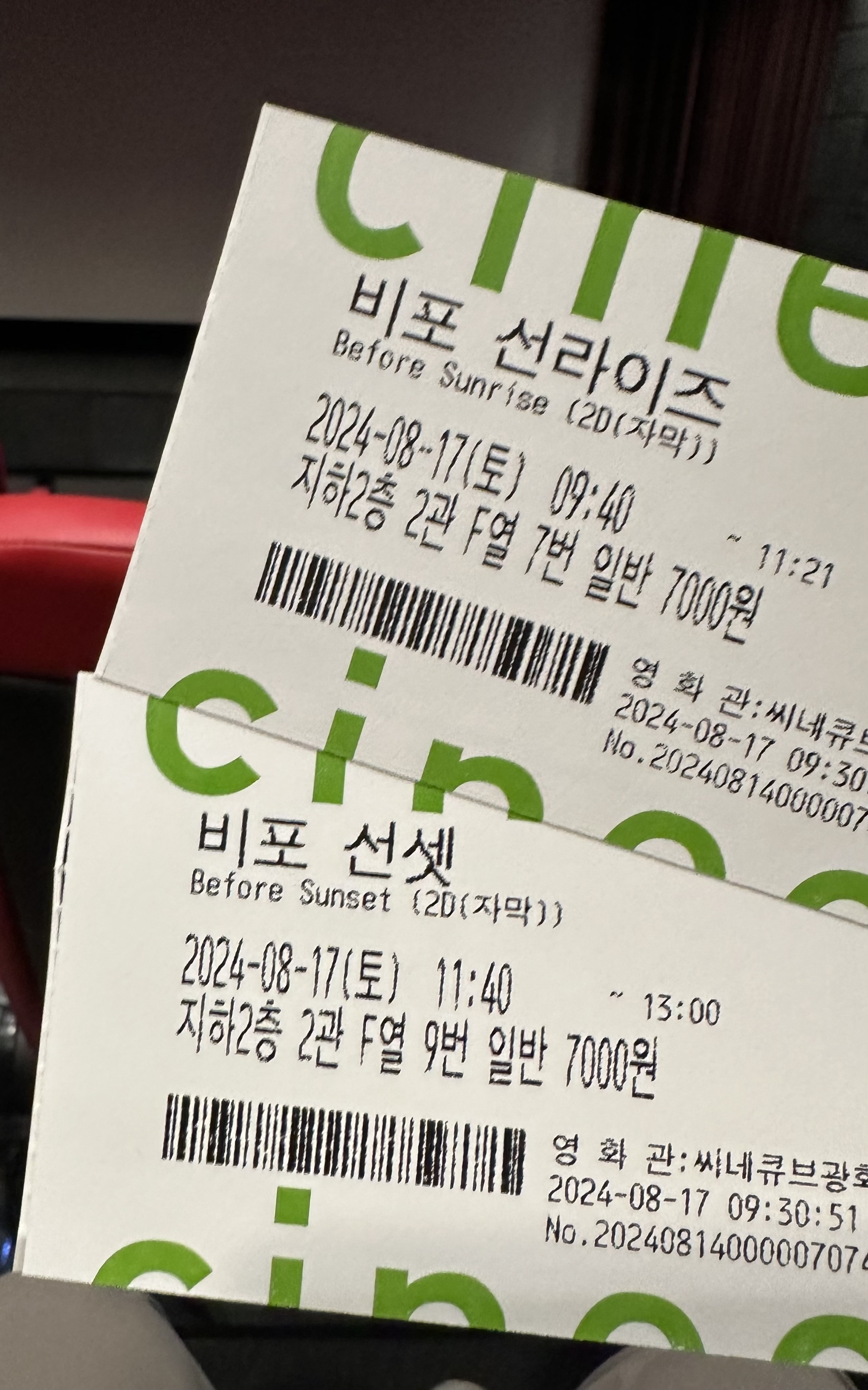 토요일 아침부터 혼자 광화문에서 영화 피서를 했다. 8월엔 두 주 사이에 극장 나들이 세 번에 영화 다섯 편을 봤으니(두어 편 더 볼 수도 있다), 피서를 핑계로 영화를 그 어느 때보다 많이 보고 있다. 팟캐스트 '김혜리의 필름클럽'에서 <비포> 시리즈를 듣고, 불현듯 시간 맞춰 상영중인 두 편을 연속 관람했다.