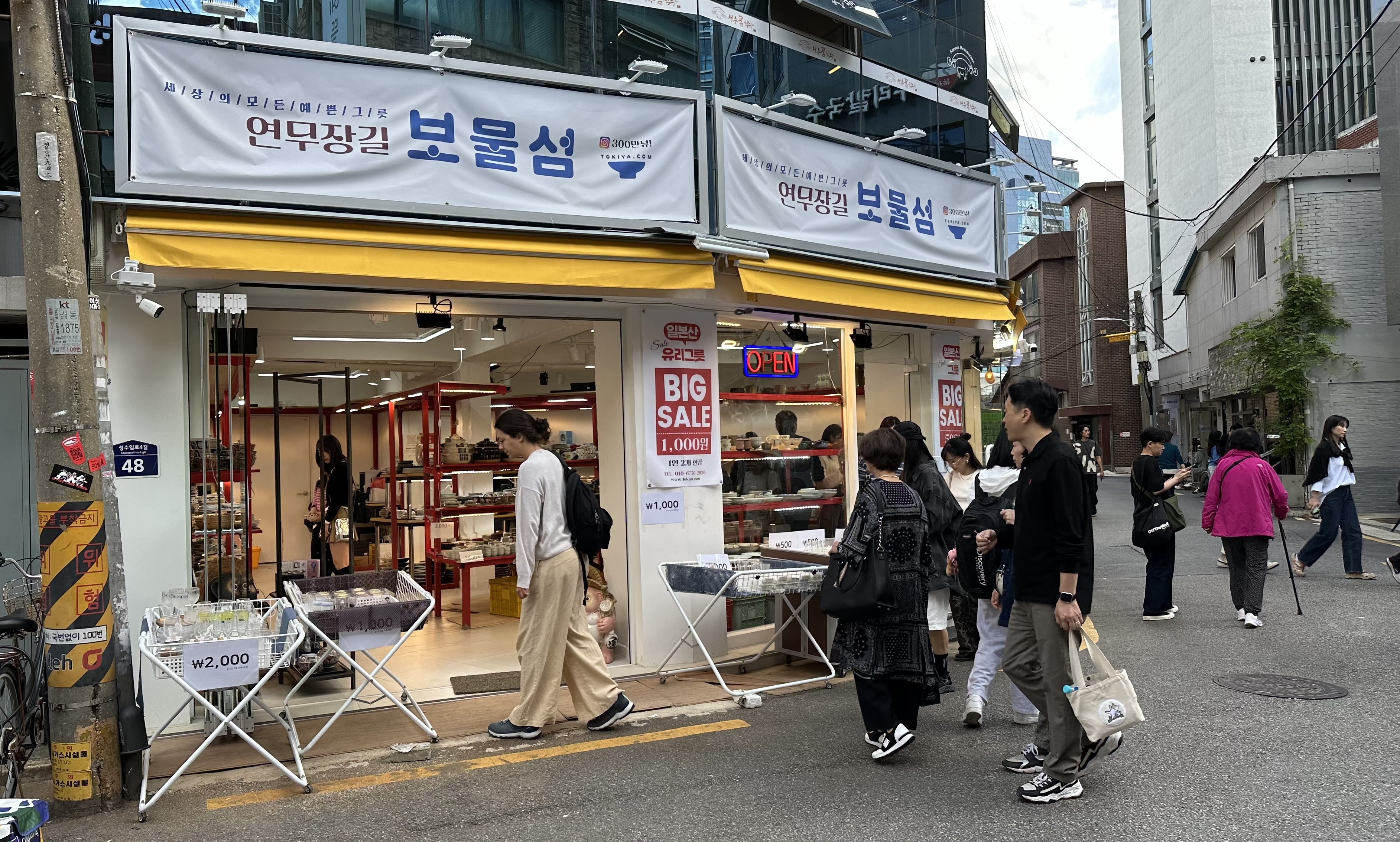 아내의 안경테가 헐거워져 수리할 겸 개철절 점심 때 성수 나들이를 했다. 식당도 40분 대기를 걸어두고 잠시 둘러보는데, 원래도 핫한 동네인데다가 휴일을 맞아 거리는 인산인해를 이루고 있었다. 이 동네의 도로명 이름이 연무장길인데, 빅 세일을 내건 일본 그릇 가게가 보였다.