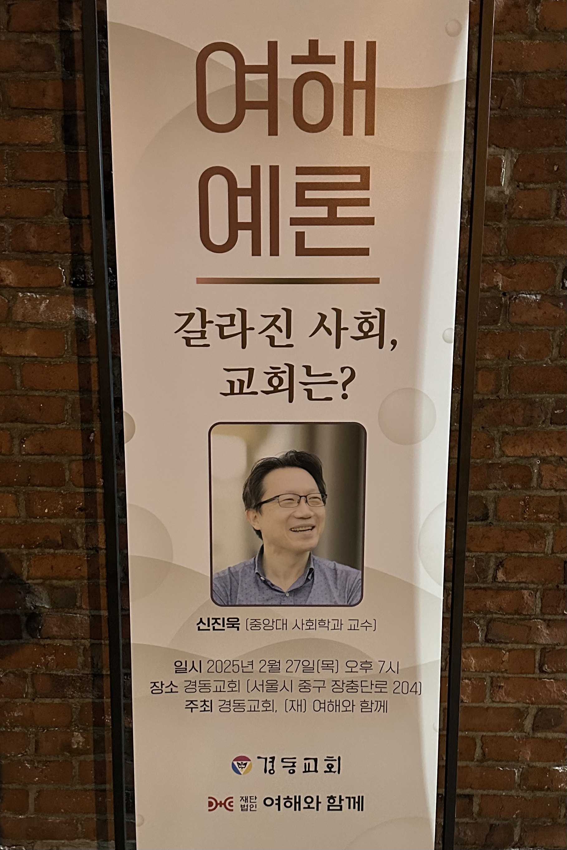 어제 저녁 교회에서 열린 강의를 듣고 왔다. 올해가 교회 창립 80주년이어서 교회의 초석을 놓은 강원용 목사님(1917-2006)의 호 如海를 따서 재작년부터 <여해예론>이란 시리즈 강좌를 개설해 전문가들을 초청해 듣는 건데, 주일 오후에 하다가 올해부터 평일 저녁으로 옮겼다고 한다.