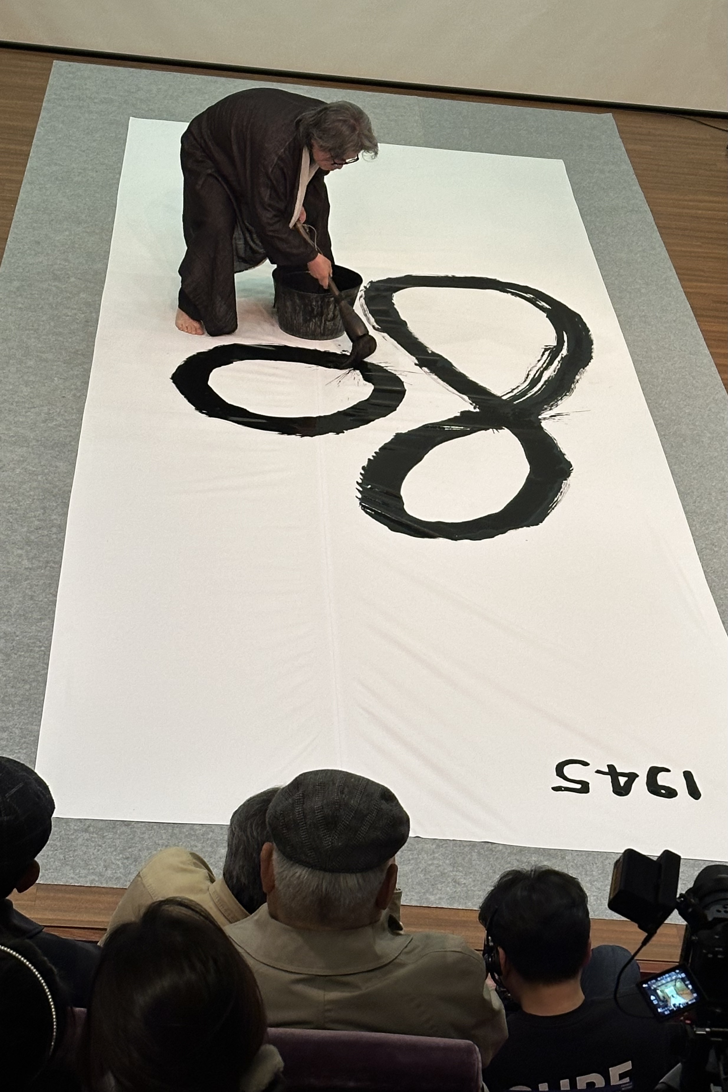멋글씨는 서예와 디자인을 접목해 부르는 말인데, 이 분야를 개척한 강병인 선생이 무대 바닥에 펼쳐놓은 커다란 화선지를 딛고 서서 빗자루처럼 생긴 큰 붓과 작은 붓으로 힘차게 써내려갔다. 참이슬, 화요 등 유명 상품 로고와 정도전, 미생 등 드라마 타이틀 글씨로 익숙한 강 선생은 끙~ 소리를 내며 힘을 주면서 글씨 퍼포먼스를 행해 아주 볼만 했다.