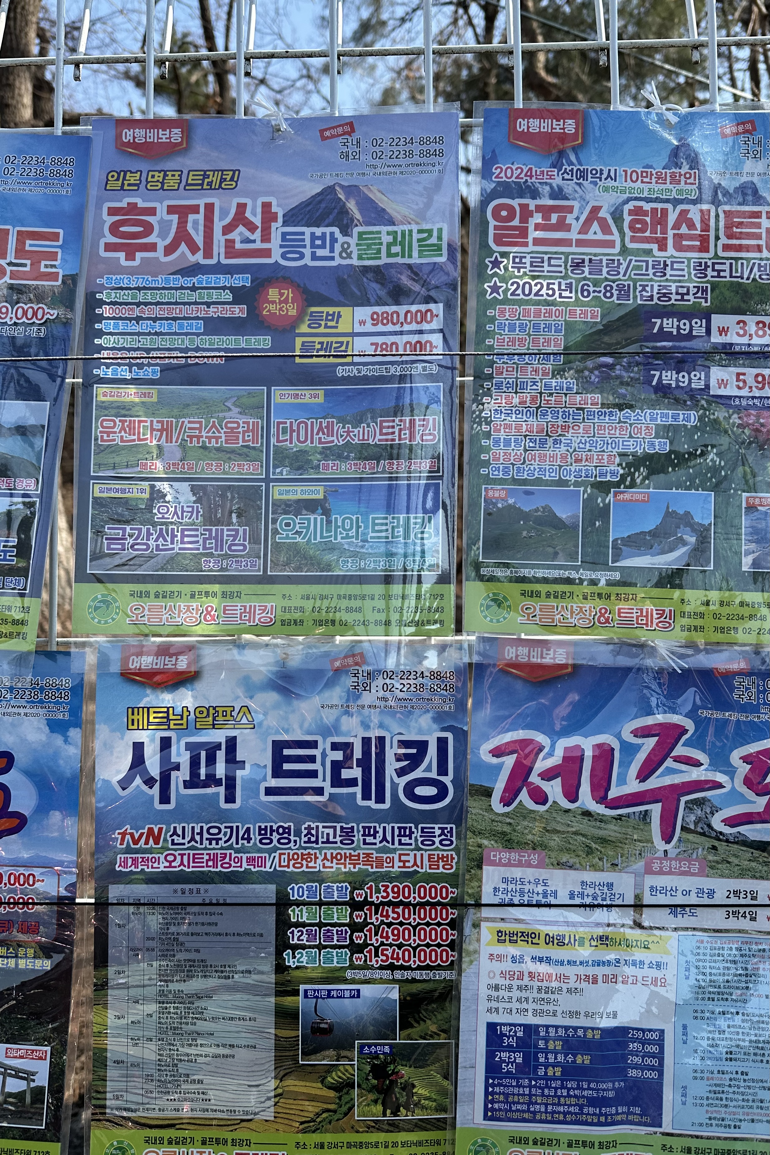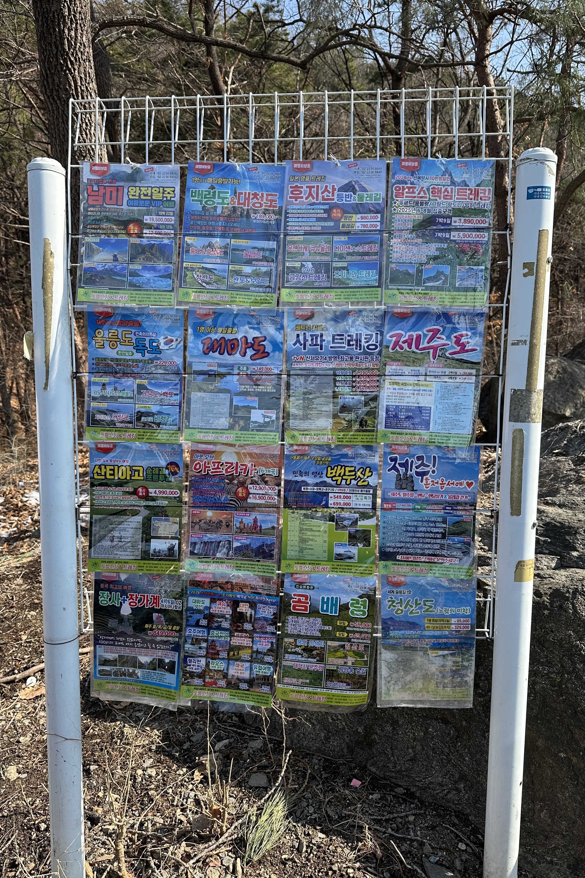 동네산 검단산과 예봉산, 운길산을 비롯해 등산객이 조금 온다 싶은 산에는 등산로 초입에 해외 트레킹을 선전하는 전단지들을 하나씩 가져가게 하는 광고 스탠드가 있다. 검단산만 해도 메인 등산로 양쪽 눈에 잘 띄는 자리에 십여 년 전부터 서 있다. 그새 지역이 업그레이드가 됐나 싶어 살펴보니, 대동소이해 보였다.