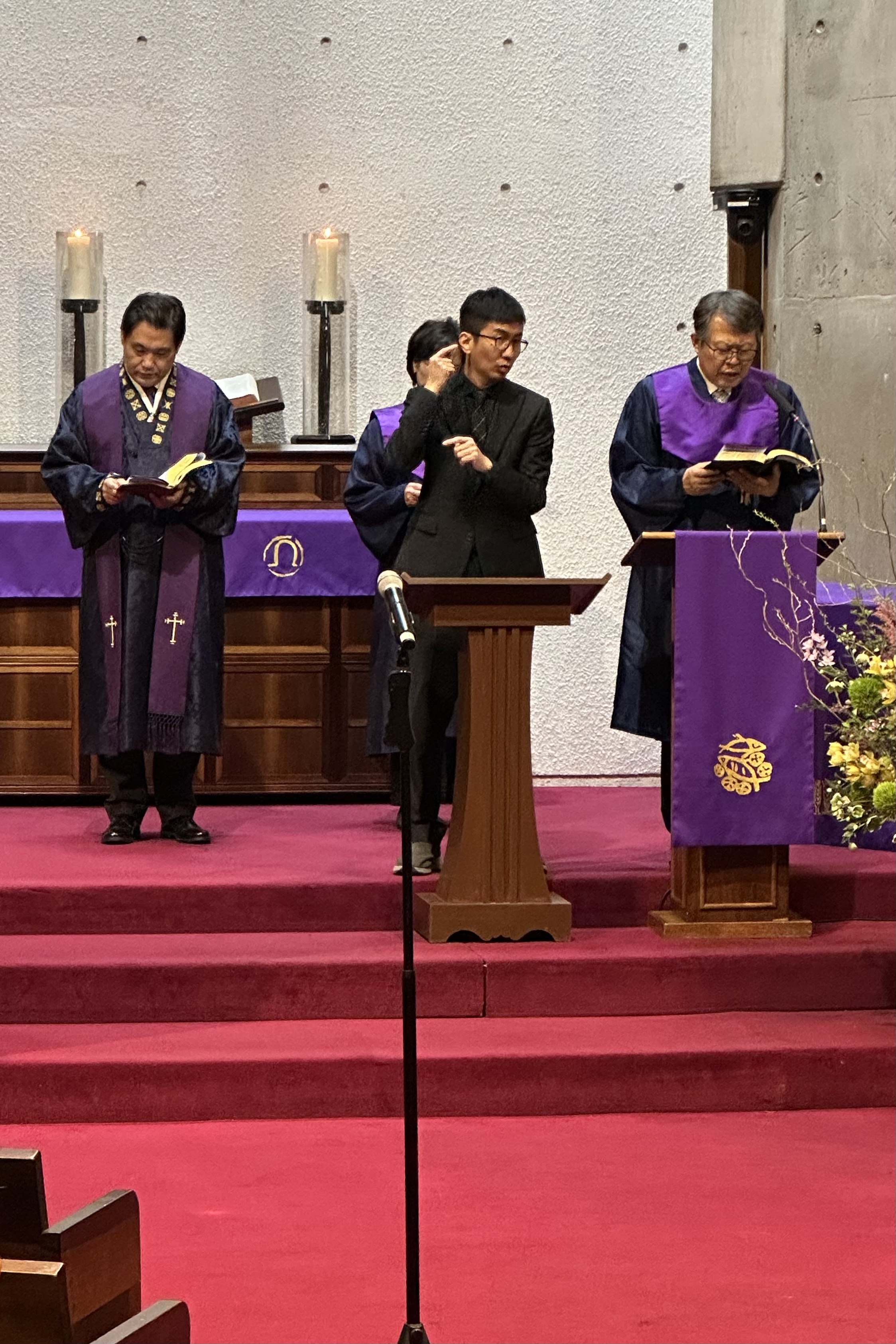 작년에 이어 SBS 뉴스에 나오는 양준식 선생이 수어 통역을 맡아, 예배 시작부터 끝까지 설교는 물론 회중의 찬송과 성가대 찬양도 수어로 말했는데, 우리가 눈 감고 하는 기도 시간도 눈 뜨고 수어 통역을 해서 특별한 시간이 되었다. 수어로 하는 표현이 강렬하고 인상적이어서 덕분에(?) 예배 내내 수어 통역자에게 시선을 집중했다.