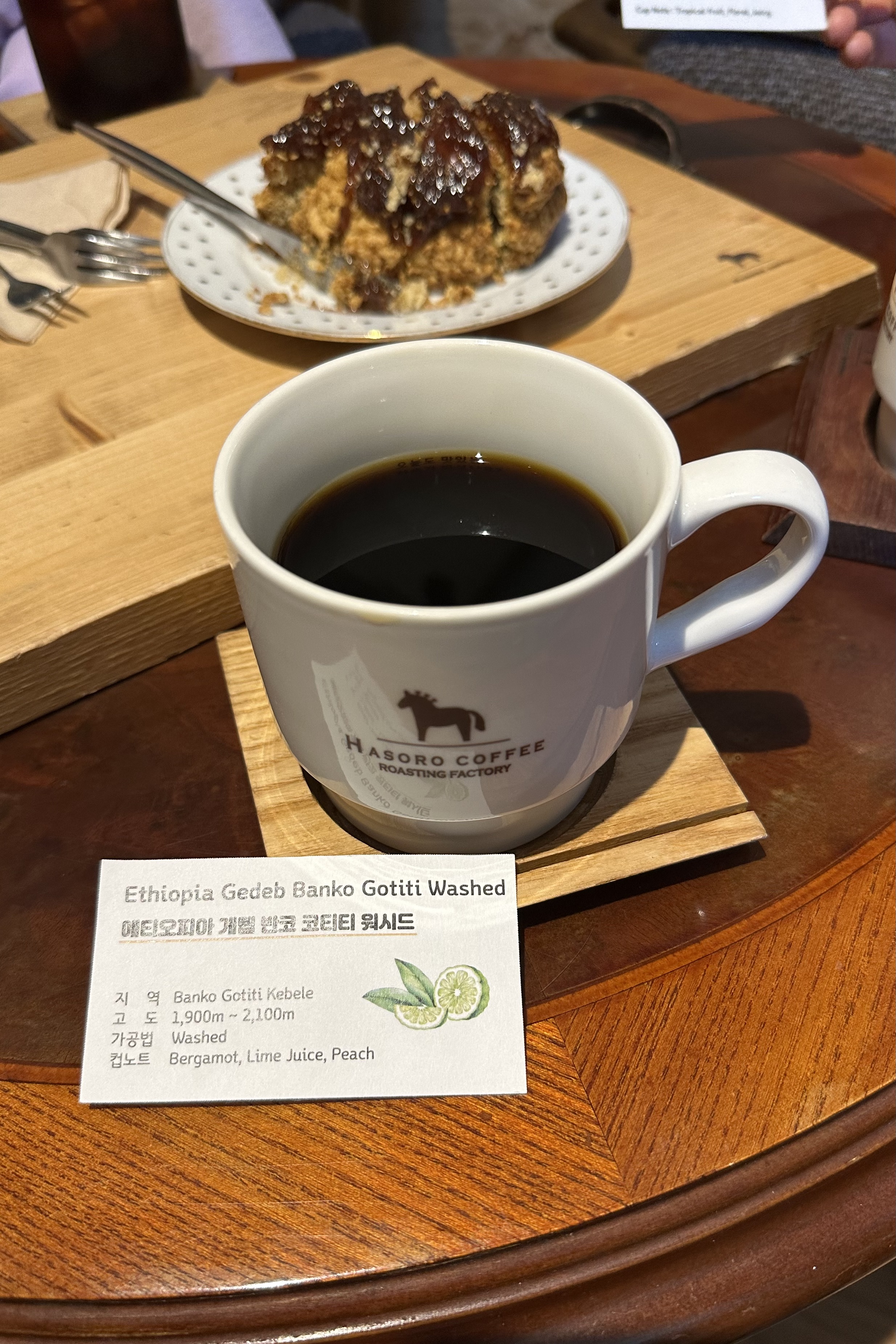 성수동(5/14/19)과 무주(9/9/24)에서도 그랬지만, 창고를 개조한듯, 외관은 낡고 볼품없어 보이지만, 문을 열고 들어서면 층고가 높은 공간이 나오면서 개성 있게 꾸며 커피 맛을 보기 전부터 기대감을 불러일으켰다. 로스팅 공간이 마련돼 있고, 스콘 같은 간단한 베이커리를 곁들여 여유 있는 휴식을 취할 수 있는 분위기였다.