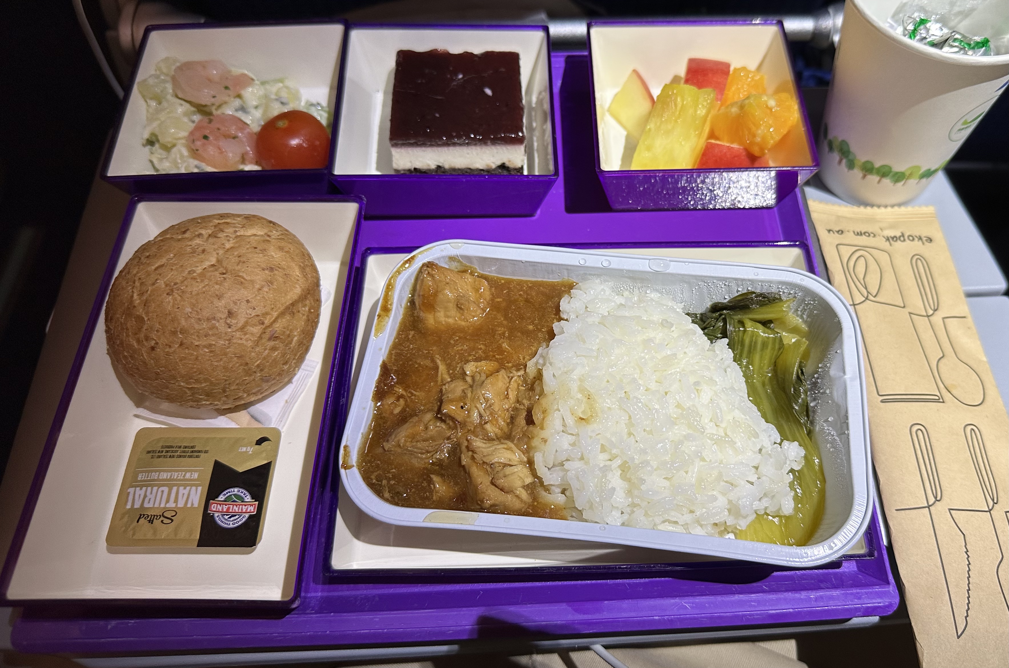 기내식은 광저우 갈 때 한 번, 오클랜드 갈 때 두 번 나와 모두 여섯 번을 먹었는데, 내가 지불한 60만원대의 저렴한 항공료에 비해 나쁘지 않은 편이라고 여겨진다. 중국 항공사들의 기내식에 대해 선입견을 갖고 혹평하는 사람들도 있지만, 그렇게 혹평을 들을 정도는 아니라는 게 내 인상적 느낌인데, 재작년에 탄 중국동방항공(9/1/23)에 비해 조금 처져 보이긴 했다.