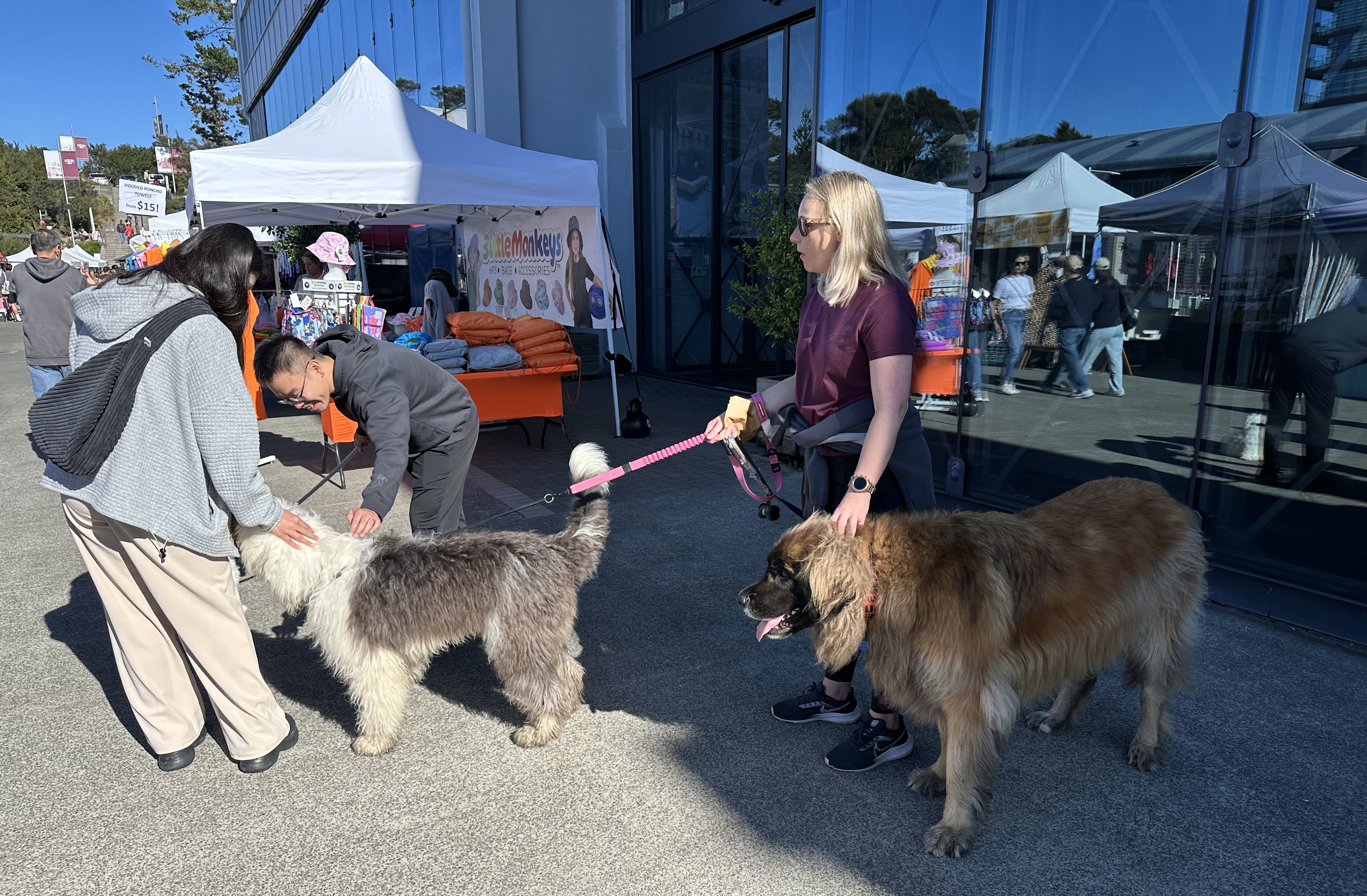 이렇개 장이 서면 물건 구경에 사람 구경은 기본이고 색다른 퍼포먼스로 시선을 끄는 이들이 있게 마련인데, 여기선 거의 집채만한 개 두 마리를 데려와 산책시키는 여성이 단연 주인공이었다. 덩치와는 달리 순한 이 개들은 사람들의 손길을 많이 받아봤는지 즐기면서 능숙하게 응대하는 것 같았다. 상팔자가 따로 없어 보였다.