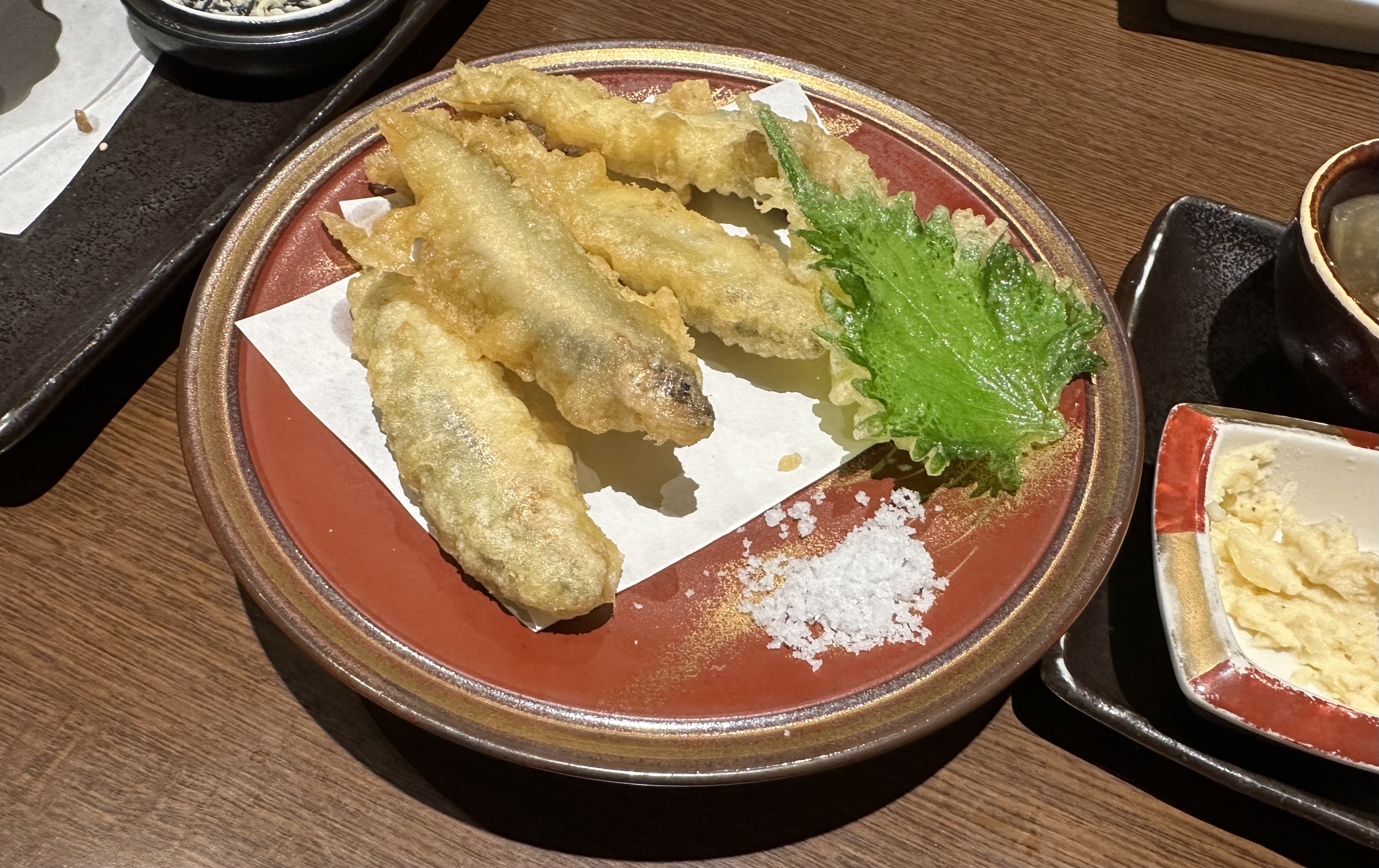 감자 샐러드, 토란 조림 등 쉬운 재료지만 맛은 하나같이 깔끔했는데, 문제는 우리처럼 반찬 양이 푸짐하지 않고 쬐끔 나온다는 거였다.두어 젓가락이면 끝나는 양은 아쉬웠지만(값은 제법 받는다^^), 교토의 세련된 식문화를 경험할 수 있었다. 세 가지 회, 은어 튀김, 돼지고기 석쇠구이 등 몇 가지 단품 요리를 더 시켜야 했지만, 맛보기로 그만하면 됐다 싶었다.