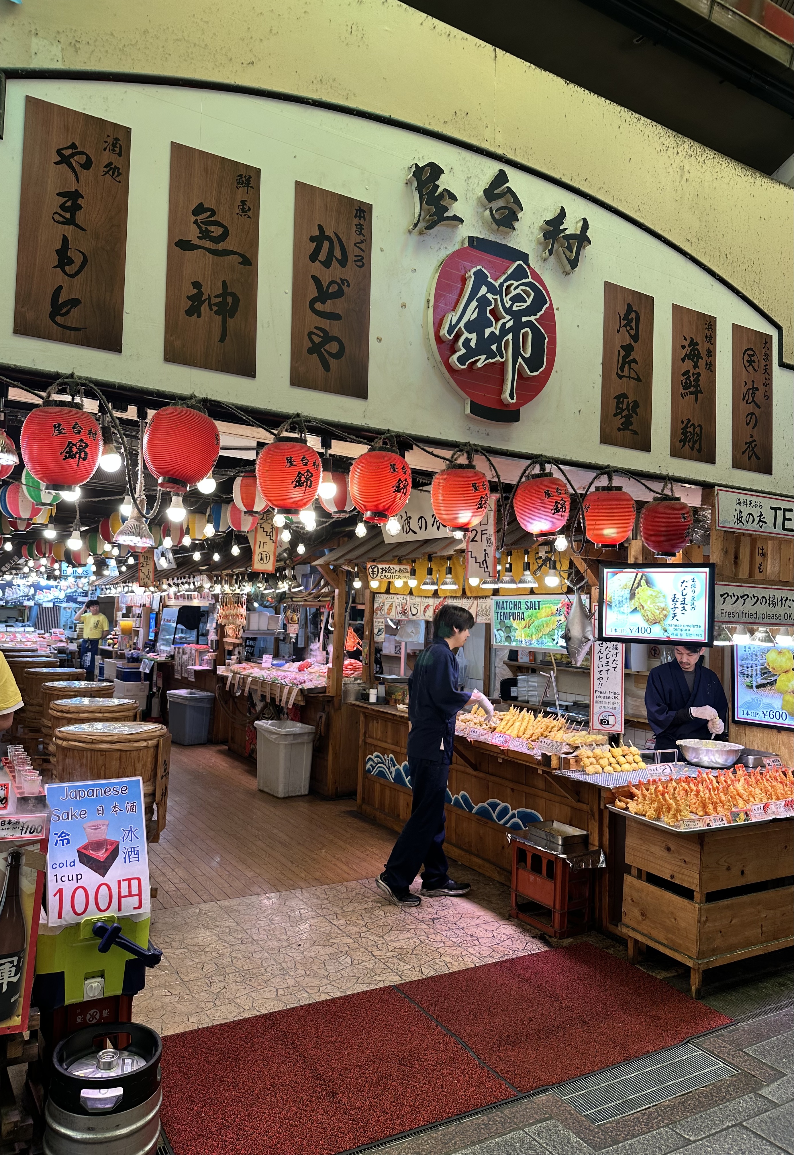 여행지마다 시장이나 마트 구경하는 재미가 쏠쏠하다. 숙소에서 15분 정도 걸으면 '교토의 부엌'이라 불리는 니시키 시장이 나오는데, 숙소 바로 앞에 근사한 라이프 마트(7/1/25)가 있어 매일 들리는 바람에 시장은 오는 날 아침에서야 잠시 둘러봤다. 입구에서 비단 금(錦) 자를 보고 들어가면 되는데, 아케이드형으로 너댓 개 골목이 꽤 길게 이어진다.