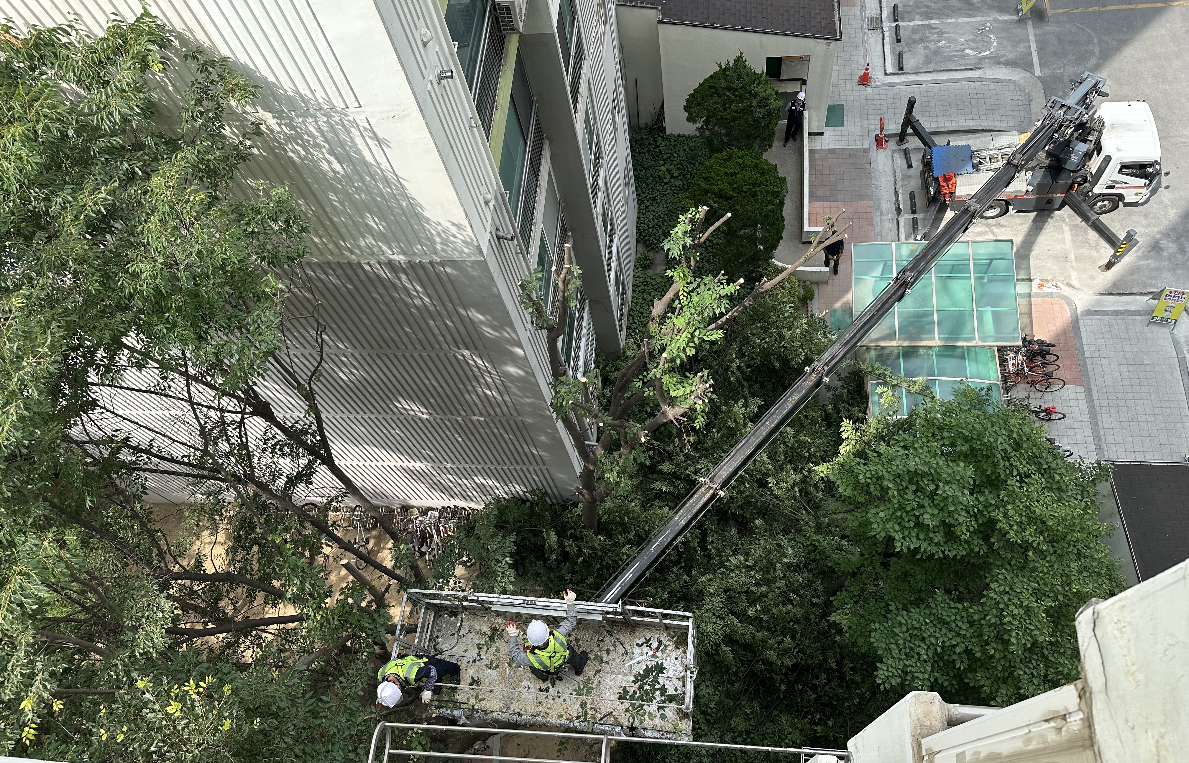 우리 아파트 단지는 30년을 지나면서 나무들이 다들 키가 크다 못해 어떤 나무들은 5, 6층까지 가지와 이파리를 뻗기에 이르렀다. 길에서 볼 때는 우람하고 울창한 게 참 좋은데, 막상 우리집 창가까지 가지가 뻗친다면 이야기가 달라진다. 강풍이라도 불면 부러질 위험도 있어 안전상 조치가 필요해진다.