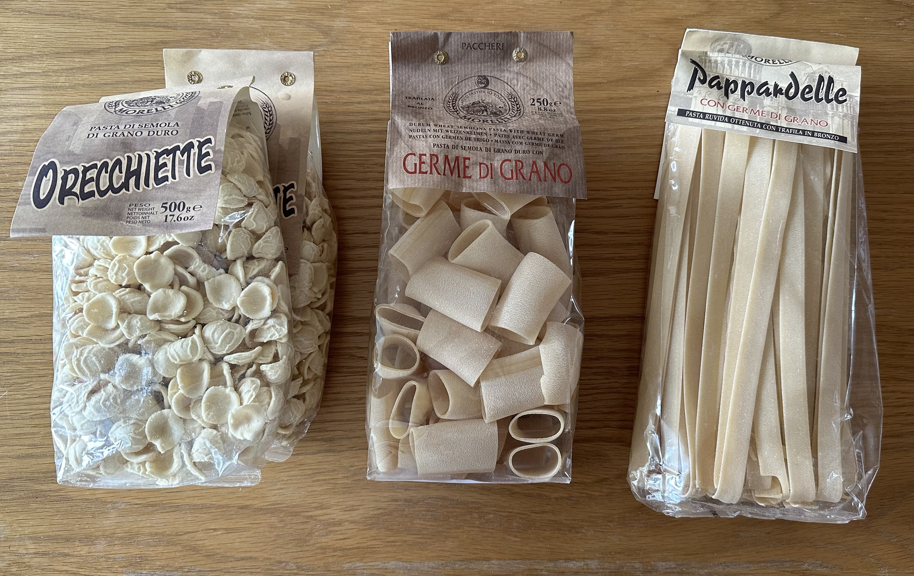 이 파스타의 탄생에 기여한 건 처제인데, 한 달 전쯤 처가 형제들이 모였을 때 파스타면을 몇 개 주었더랬다. 일반적인 스파게티면이나 펜네 정도가 아니라 하나 같이 개성 있게 생긴 것들인데, 읽기 어렵지 않지만 자음과 모음이 많아 수선스런 이탈리아어로 된 애들이었다. 모양이나 이름이야 어떻든, 이 면들이 맛과 함께 보는 재미도 선사해 주었다.