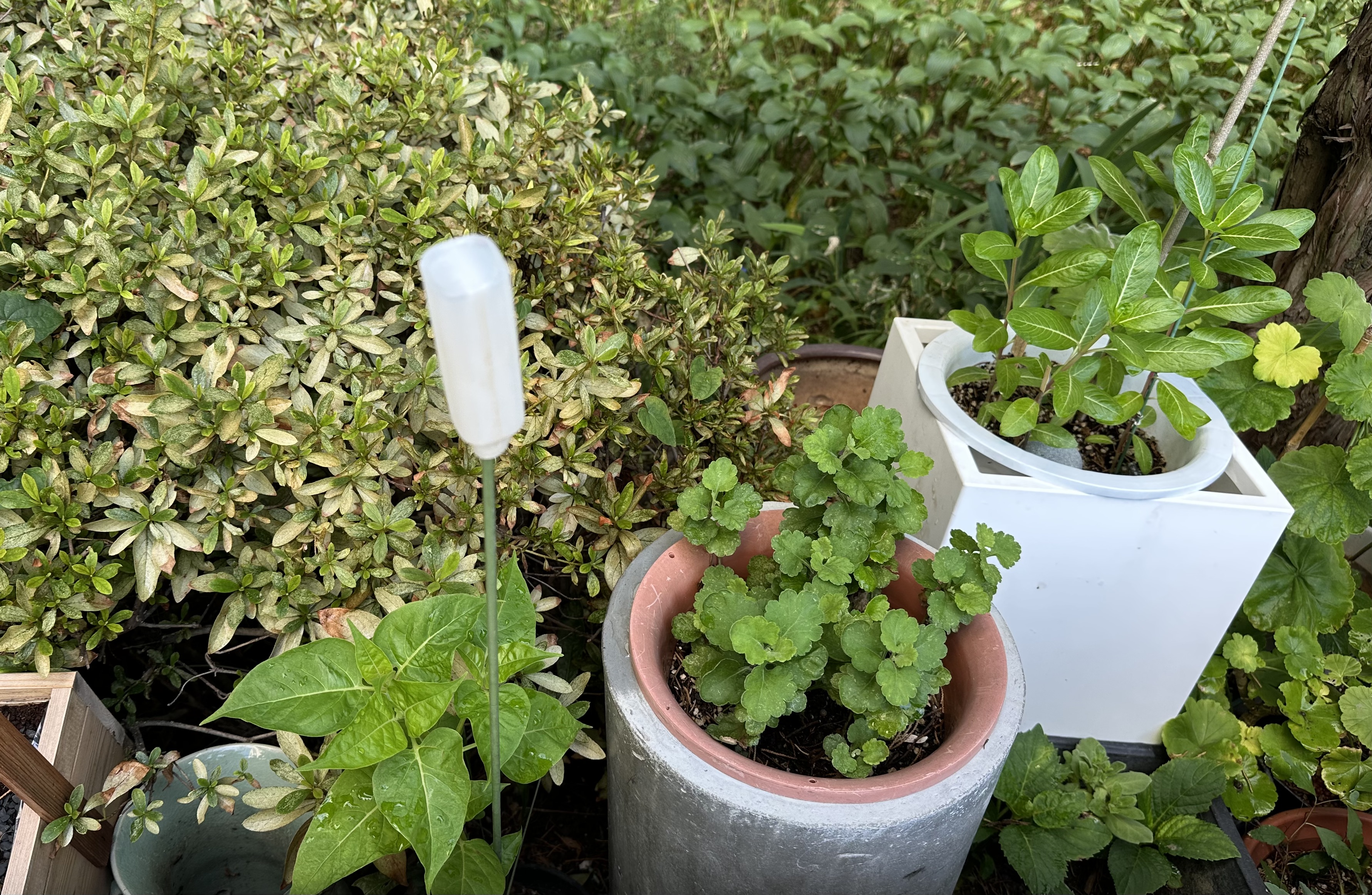 우리 아파트 1-2라인 입구에 1층 주민이 내놓고 기르는 화초들(7/11/25에 생수병 두 개가 걸려 있었다. 화초가 곧바로 자라도록 꼽아놓은 지지대에 뒤집어 꽂은 게 영락없는 병실 링거(5/8/19)처럼 보였다. 장식으로 저리 꽂아놓은 건 아닐 텐데, 무슨 효과가 있는 겐지, 아니면 그저 익숙한 풍경에 작은 변화를 주는 건지 모르겠다.