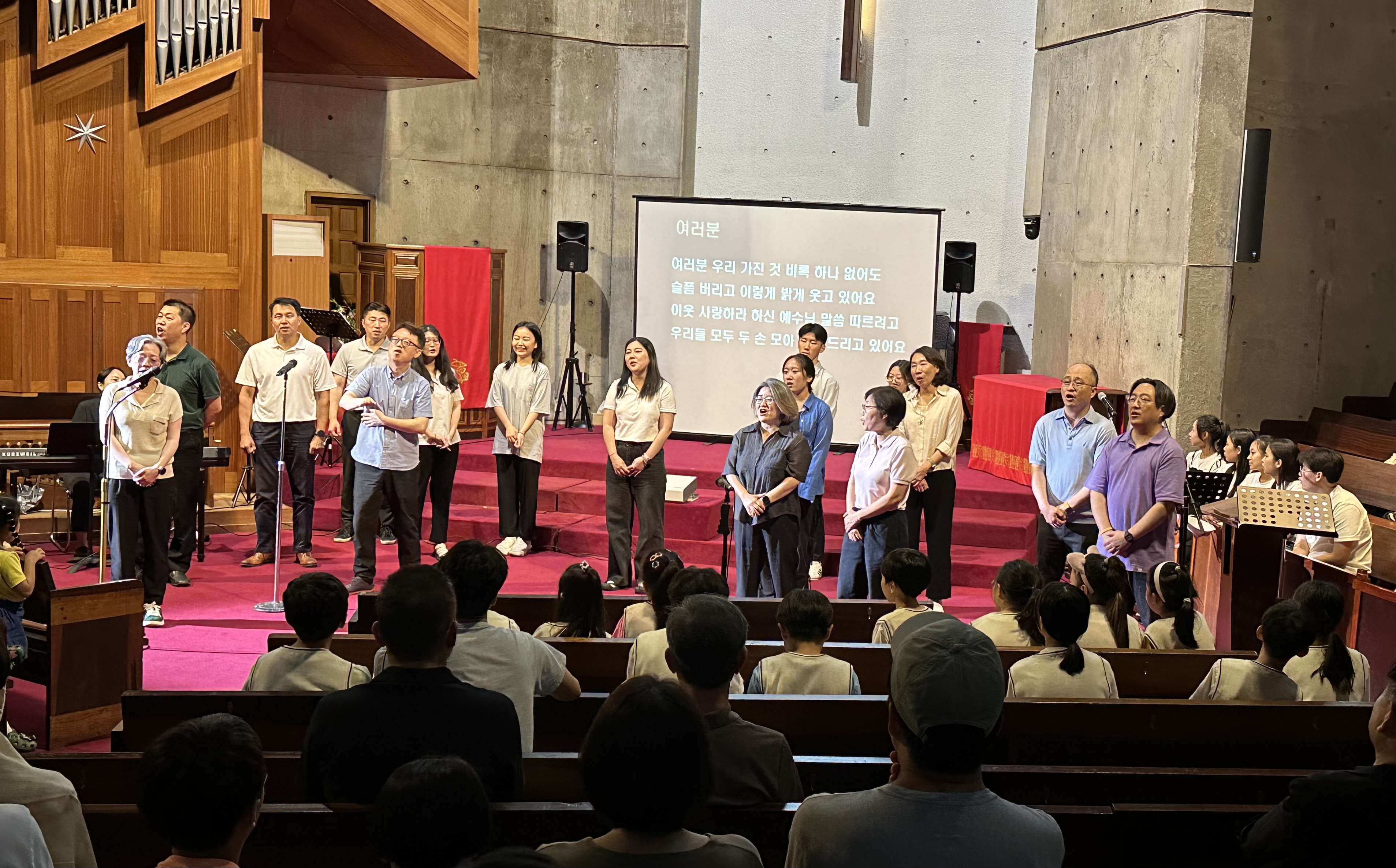 흥미로운 순서는, 교회학교 출신 선배들이 나와서 "교가" 비슷한 걸 부르는 시간이었다. 20대부터 50대까지 이 교회 공간에서 시간대는 달라도 어린이, 청소년기를 보낸 이들의 표정에선 우리가 모르는 감회가 드러나는 것 같았다. 그 중 한 분은 수화로도 옮기면서 가사에 담긴 의미를 되새기게 해 주었다.