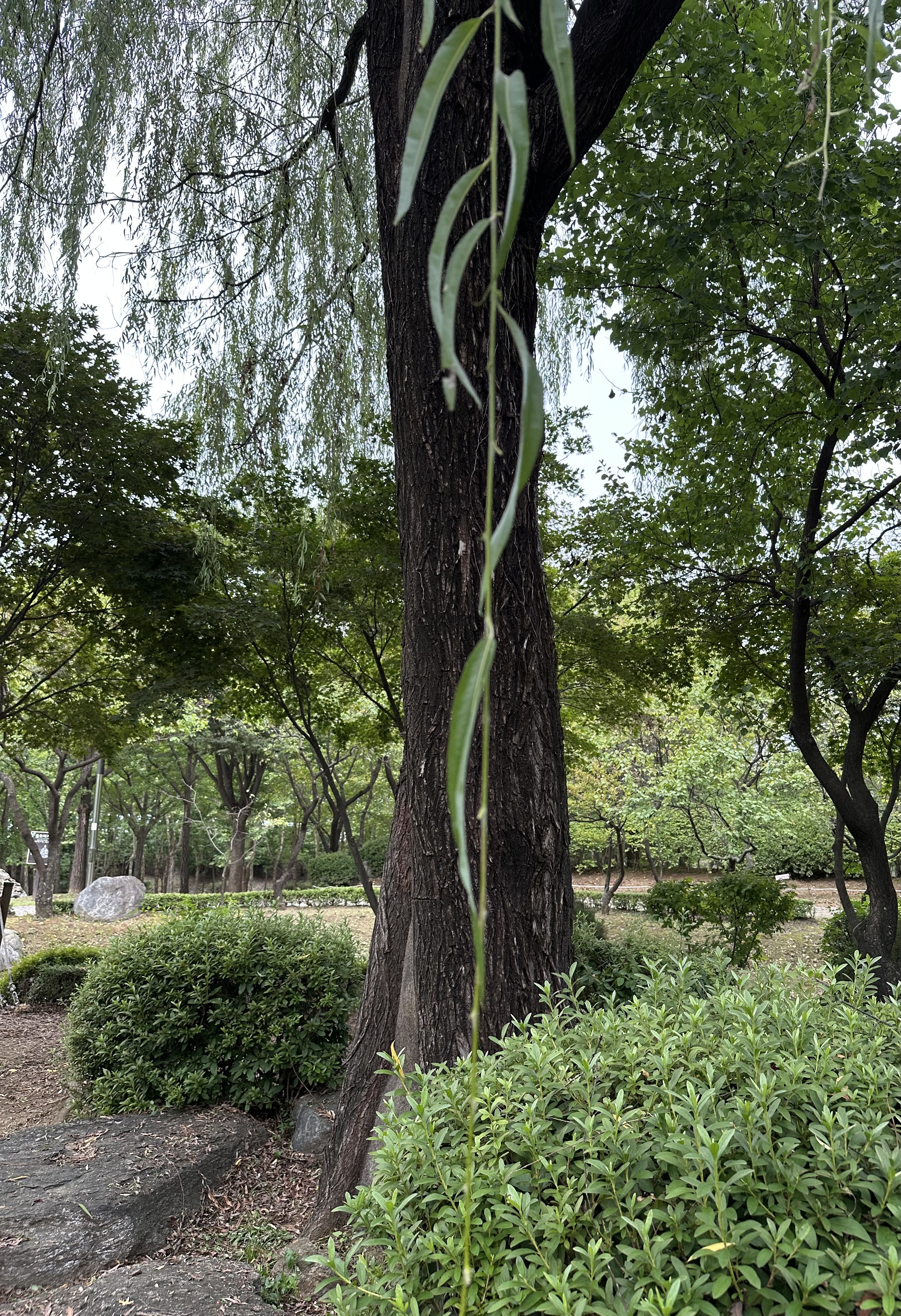 연꽃이 피는 연못도 있고, 이런저런 나무들 사이로 산책하기 딱 좋은데, 그 중 수양버들이 보기 좋게 늘어져 있었다. 바람이라도 불어대면 수양버들이 출렁거리며 춤추는 걸 구경할 수 있는데, 근사하다. 수양버들은 우리집앞 한강 산책로에도 여러 그루가 군집을 이루면서 멋진 풍경이 되어 주고 있다.