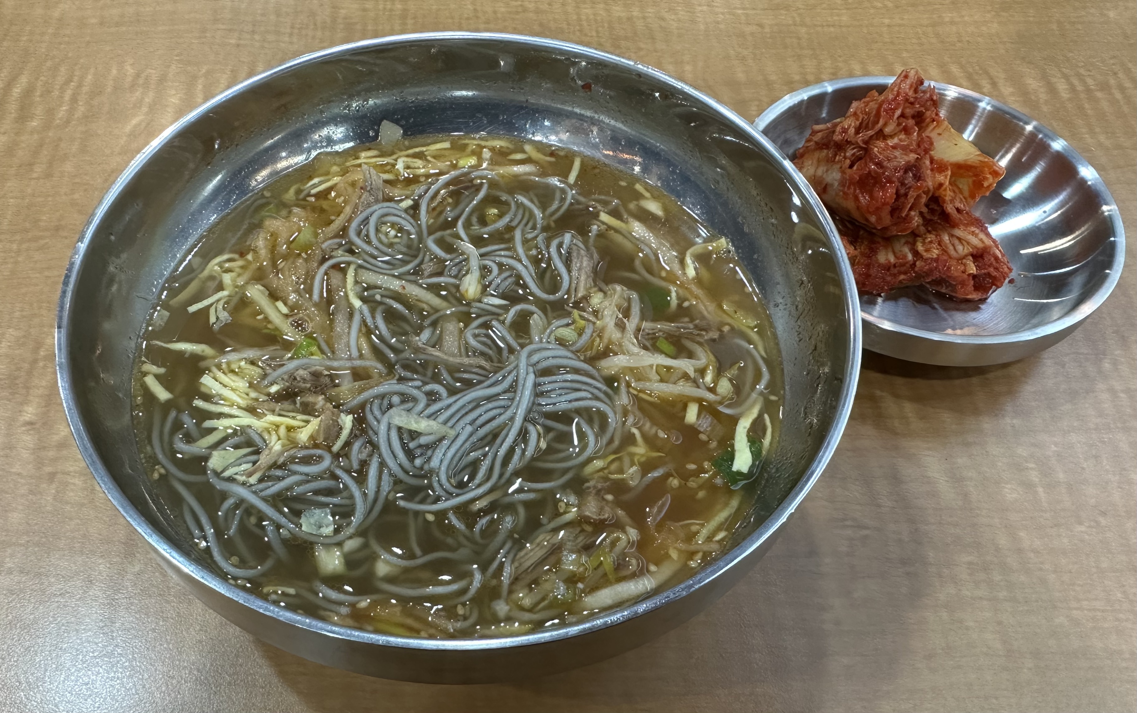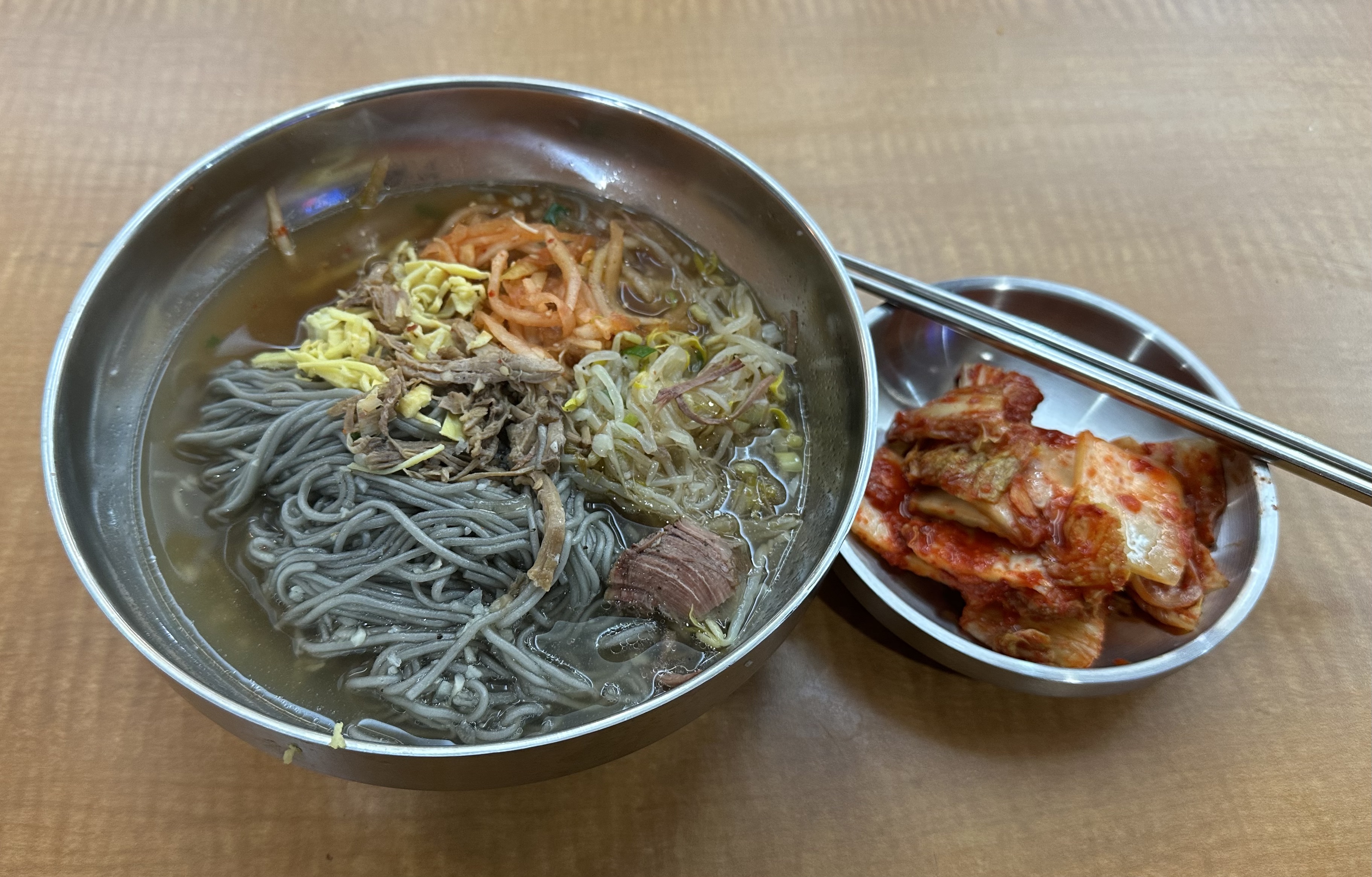 고구마 전분이 조금 들어갔을 것 같은 굵은 국수에 양지살, 무채, 달걀 지단을 올리고 뜨끈한 육수를 부은 온면은 후루룩 넘길 때마다 온기를 전해 주었고, 한 그릇 뚝딱 비우게 만들었다. 연이어 갖다 먹을 수도 있지만, 음악회까지 남은 시간에 동네 한 바퀴 산책하고 돌아와 식당에 들어서니 배식이 거의 끝나고 몇 그릇 남아 있는 것 중 하나를 받아 와 마치 그날 점심을 처음 먹는 사람처럼 맛을 음미하며 비워주었다. 내년 이맘때도 온면을 먹어줄 것이다.