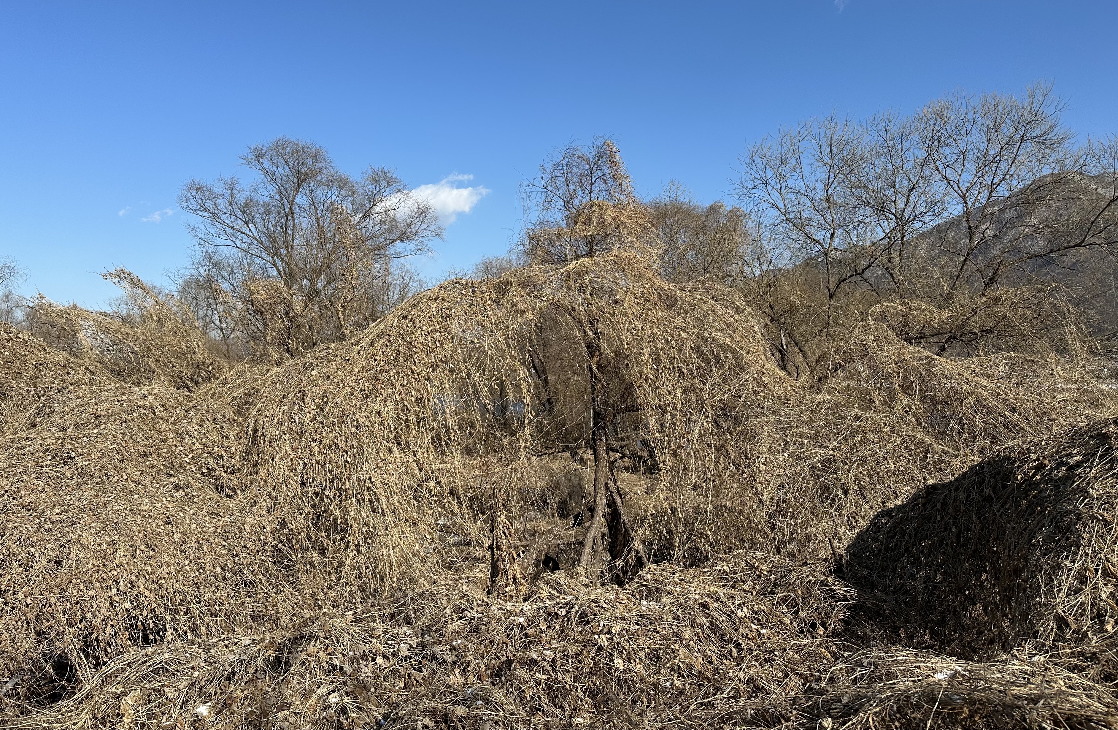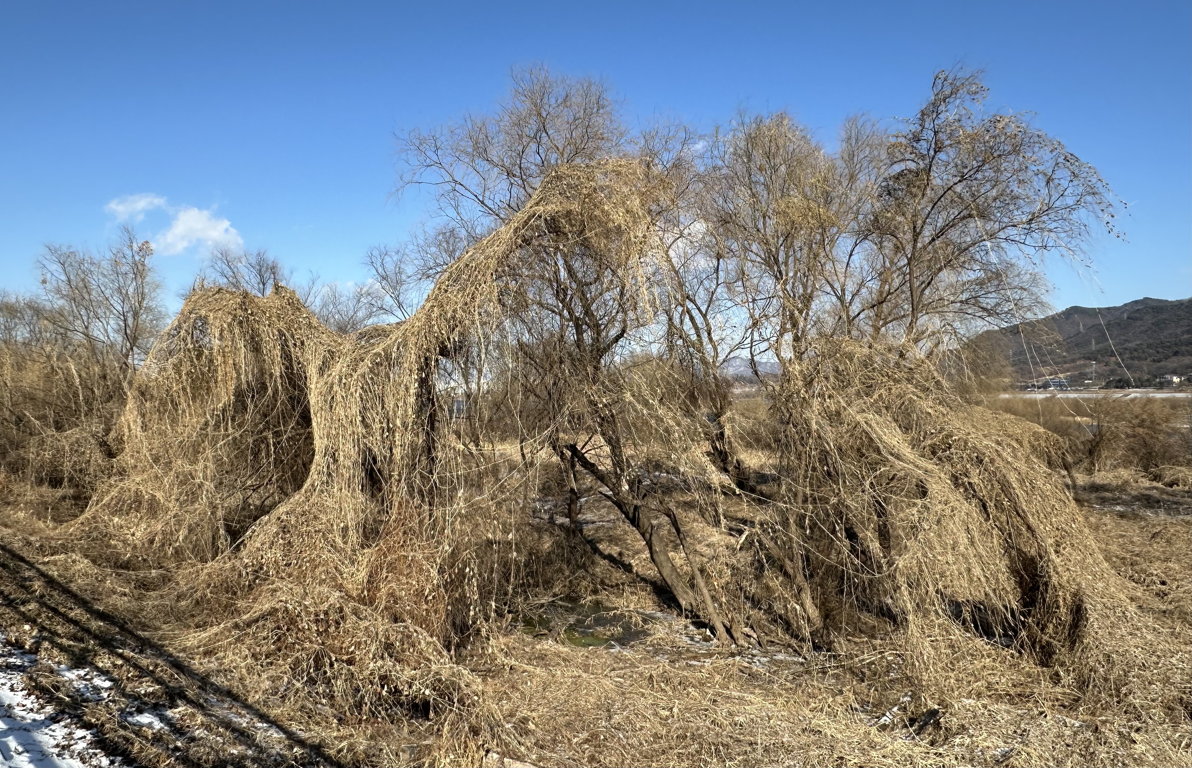 한강변 습지 옆을 걷다 보면 커다란 나무들을 엄청난 기세로 뒤덮다 못해 또 다른 형태를 띠고 있는 덩쿨들을 쉽게 볼 수 있는데, 얼마 전까지 막연히 칡넝쿨이겠거니(10/20/25) 하고 있었다. 내심 칡넝쿨이라기엔 형태도 조금 다르고 너무 기승을 부리는 게 조금 이상하긴 했지만, 다른 이름, 다른 존재일 거란 가능성은 미처 생각하지 못하고 있었다.