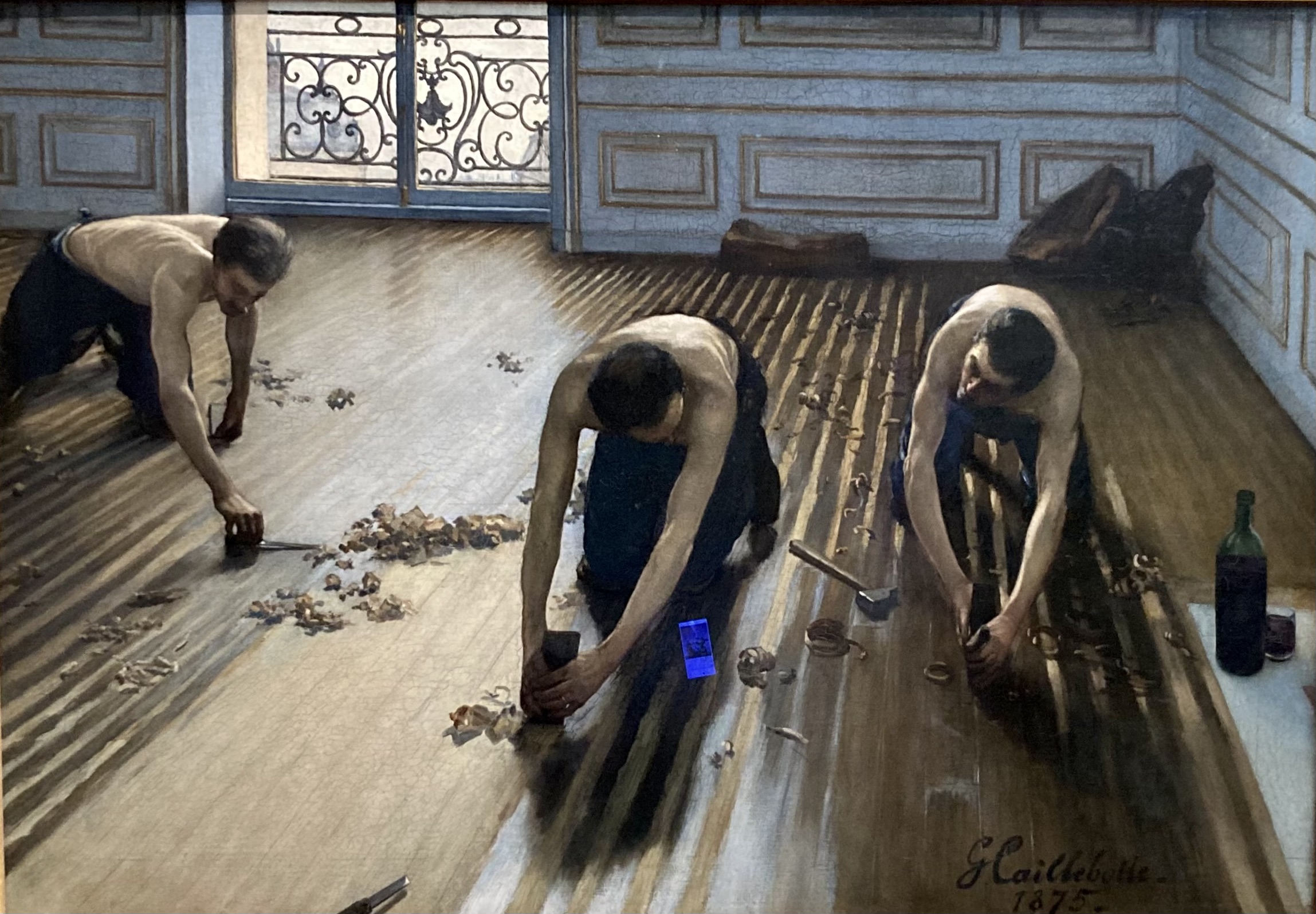 어떤 그림은 보는 순간 이전에 봤던 비슷한 이미지를 떠올리게 한다. 덕수궁 현대미술괸에서 조각가면서 화가였던 문신(1922-1995)의 1948년작 <고기잡이>를 보는 순간, 3년 전 루브르에서 봤던 프랑스 인상파 귀스타브 카유보트(1848-1894)의 1875년작 <마루 깎는 사람들>이 바로 떠올랐다. 바다와 실내라는 장소와 하는 일은 다르지만, 함께 하는 힘겨운 노동의 순간들을 잘 그려낸 작품들이다.