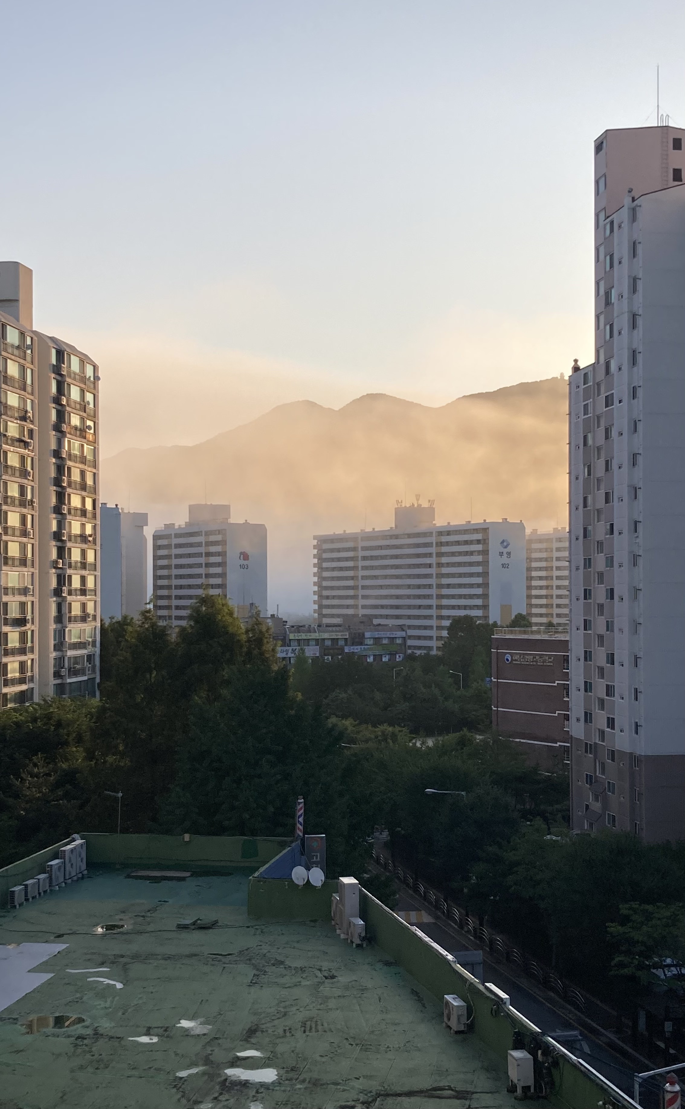 물폭탄퍼럼 퍼붓던 장맛비가 잠시 소강 상태를 보이고 있다. 아침에 일어나 양쪽 베란다에 서니 물안개가 산을 둘러싸며 휘감고 있었다. 한강쪽 팔당 예봉산이야 강변이라 물안개가 흔하지만, 반대쪽 이성산 자락까지 덮고 있는 건 흔히 볼 수 있는 광경이 아니다.