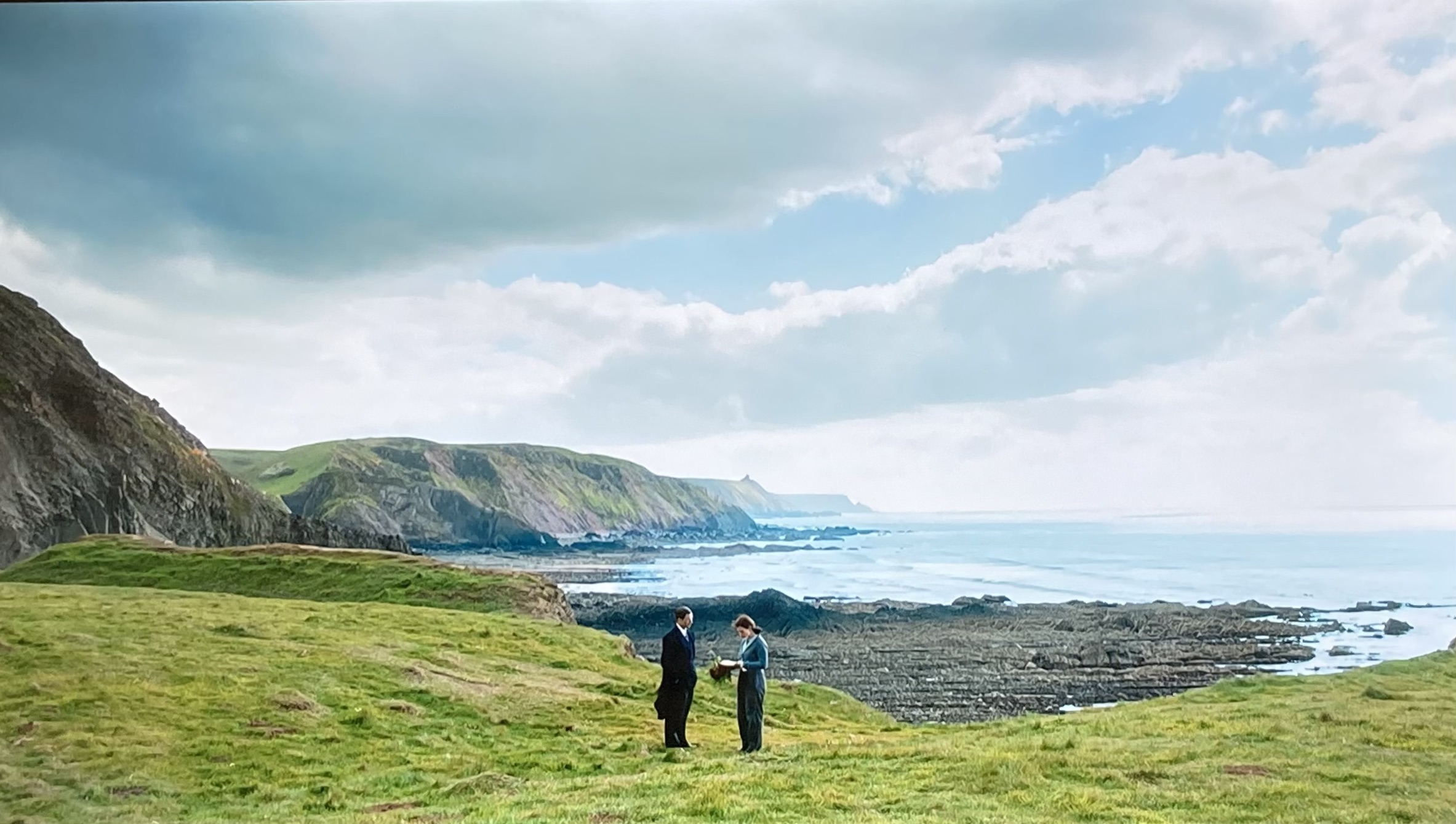 이들 중 한 사람이 런던의 여성 작가에게 편지를 쓰고, 책을 보낸 작가가 섬을 방문하면서 독일군 점령 당시의 비하인드 스토리를 취재하고, 나중에 책으로 써 내려간 이야기가 잔잔하게 흐른다. <브로드처치>(3/9/23)에서 보던 것과 비슷한 섬과 절벽의 멋진 풍경과 과하지 않은 감정의 흐름이 두 시간을 꽉 채워주었다.