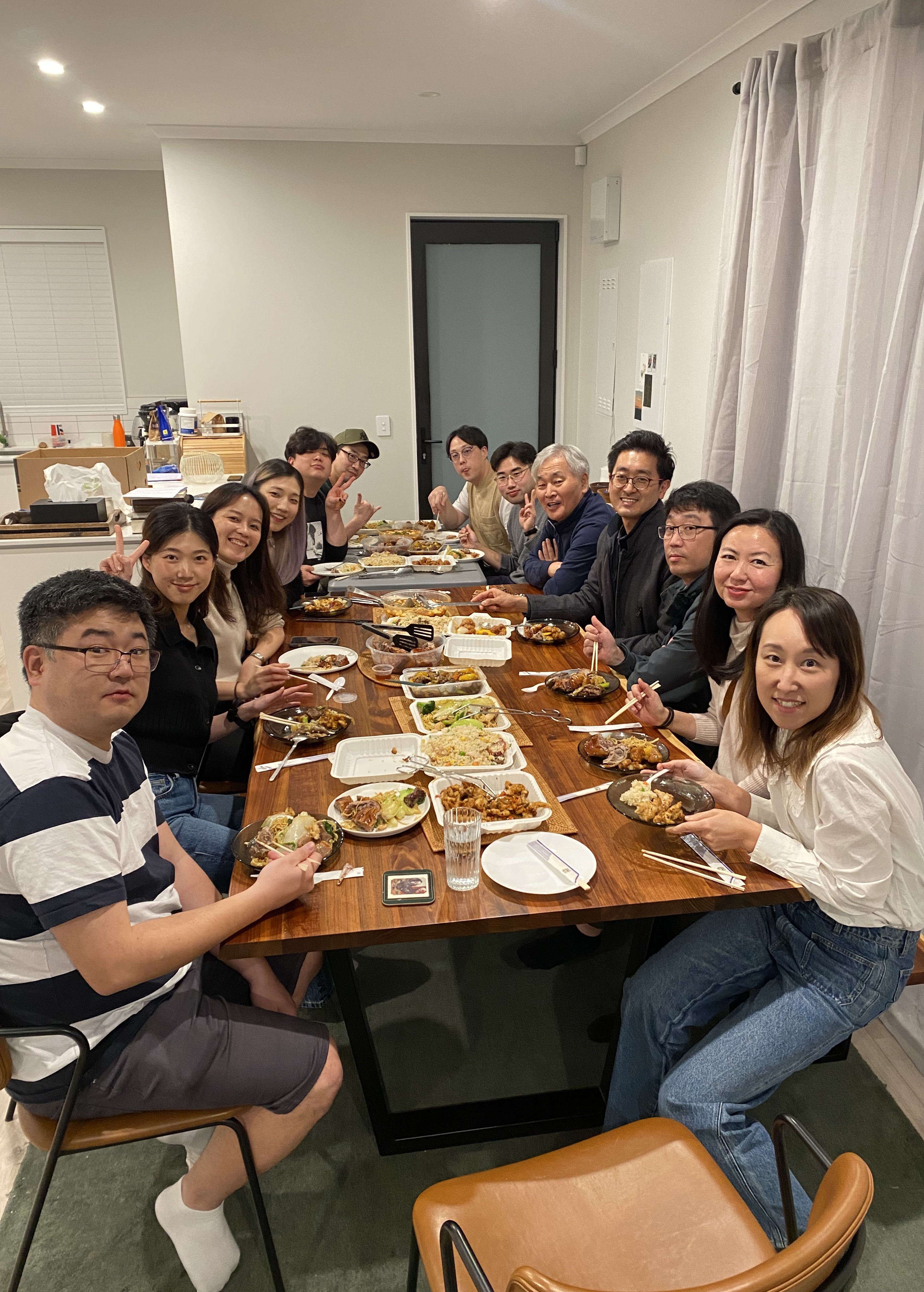 뉴질랜드에 일주일 남짓 머무는 동안 주로 가정별로 만남을 가졌는데, 서너 번 여럿이 모여 음식을 나누기도 했다. 2시 반 주일예배와 소그룹 나눔까지 마치고 열댓 명이 웨스트에 있는 교우 집에 모여 음식과 대화를 나누고, 귀국 전날 정리 모임도 나까지 어른만 열인 식탁 교제를 나누고, 또 두세 번은 서너 명과 카페에서 식사를 하기도 했다.