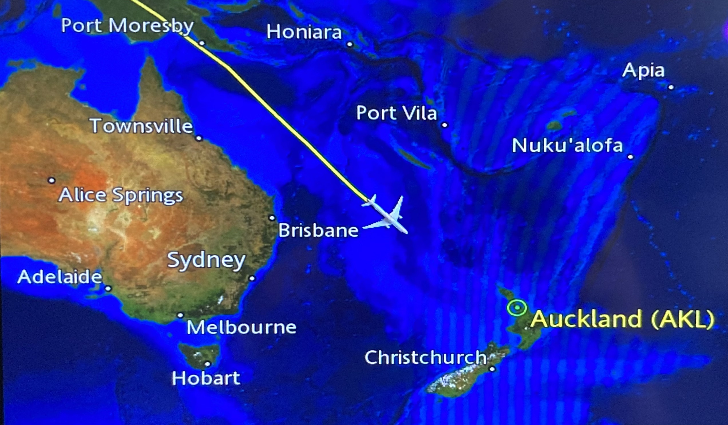 밤 비행기인지라 기내에선 이어폰으로 저장해 둔 팟캐스트를 듣다가 잠이 들다 뒤척이곤 했는데, 중간중간 어디쯤 왔나, 얼마쯤 남았나를 확인하기 위해 부질없이 좌석 앞 모니터를 켜고 이런저런 운항 정보를 보다 끄고를 반복하게 된다. 그새 태평양을 거의 지나 호주와 뉴질랜드 사이에 있는 타즈매니아 해에 진입하고 있는데, 아직 2시간을 더 가야 한다.